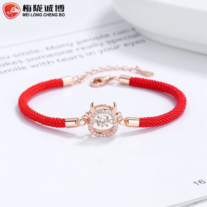 纯银s925灵动本命年十二生肖属牛手链女中国风潮编织红手绳手饰品