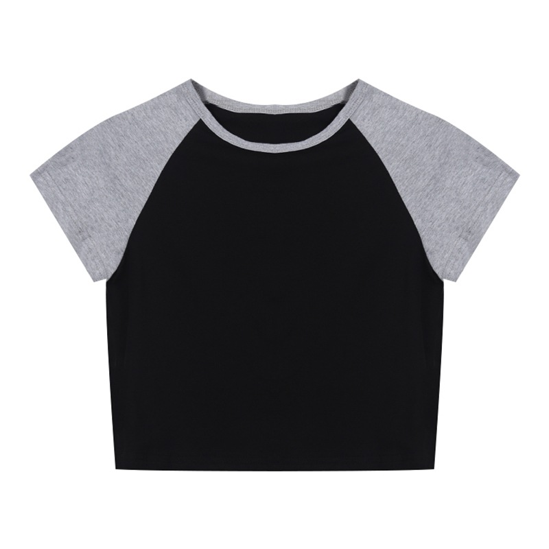 撞色短袖女韩版高腰潮ins百搭学生上衣夏年新款露脐短款t恤女