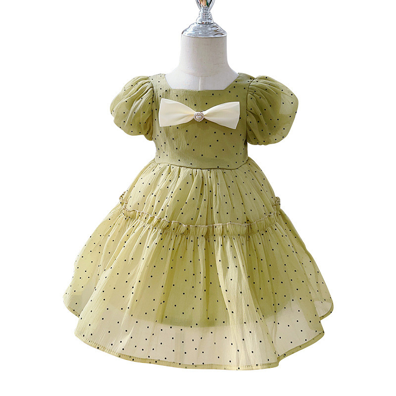 女童连衣裙夏季2025新款小女孩超洋气雪纹波点公主裙中小童裙子