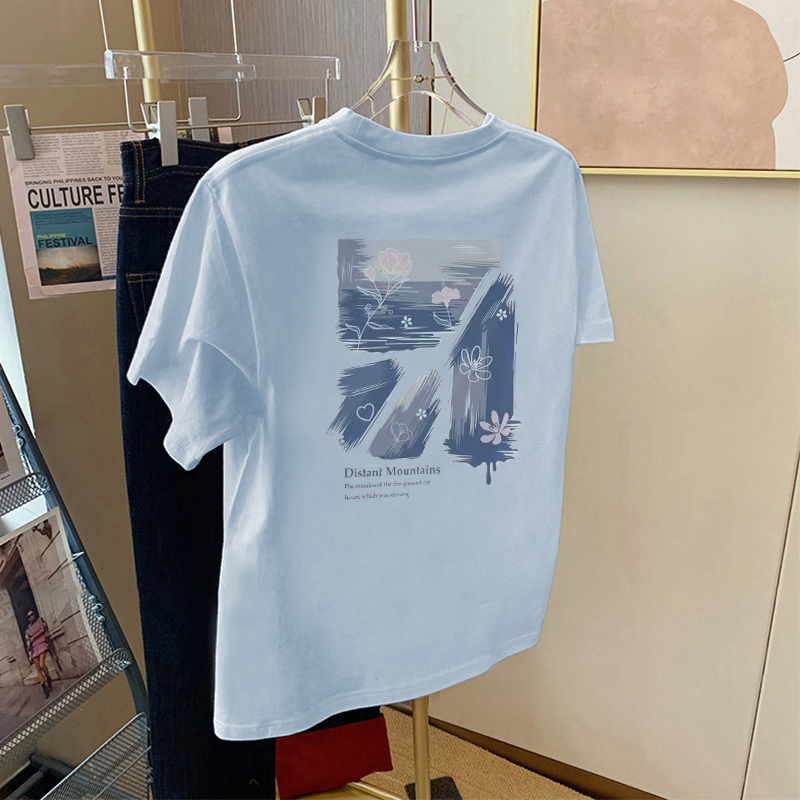 2025夏季新款设计感小众蓝色短袖t恤女宽松小个子时尚减龄上衣潮