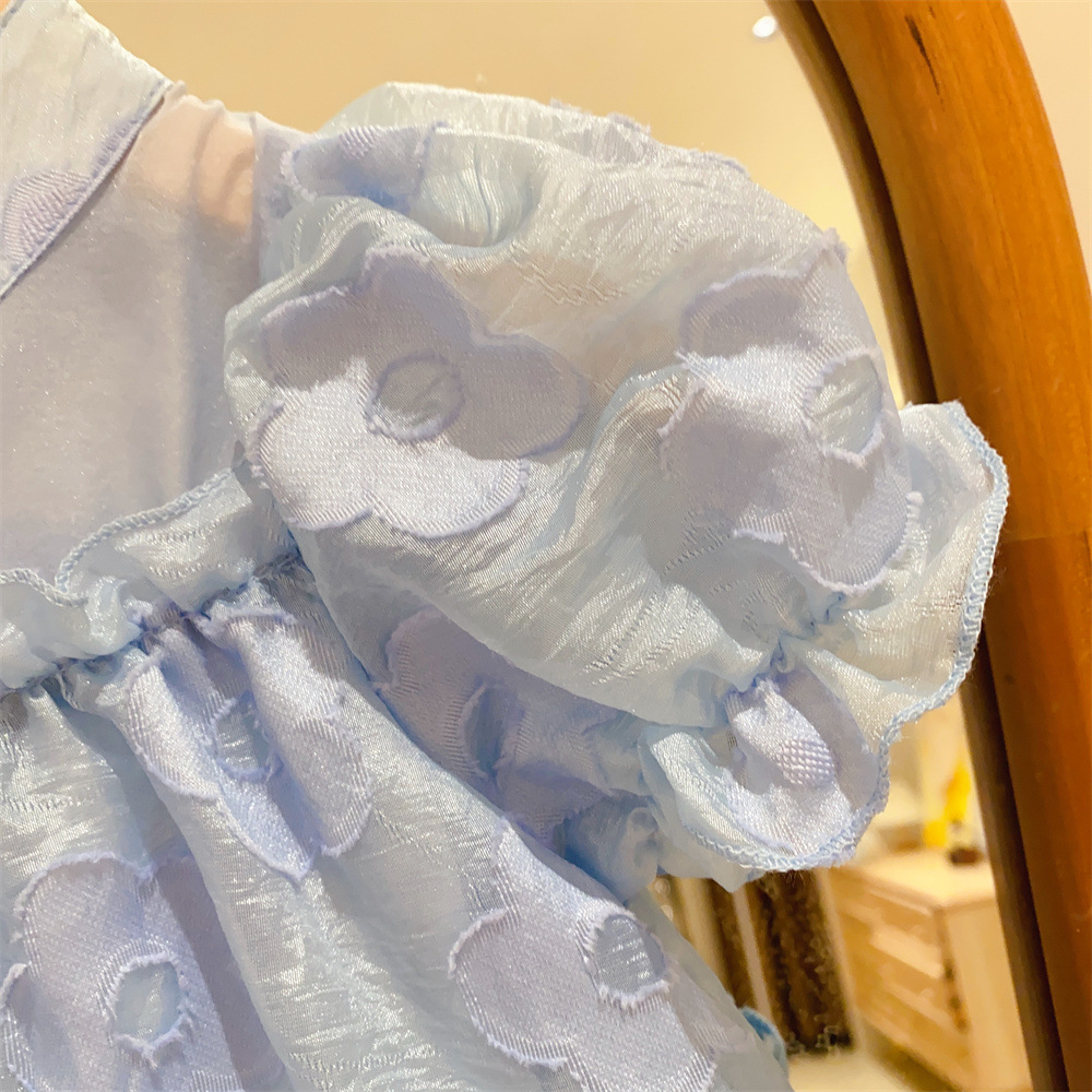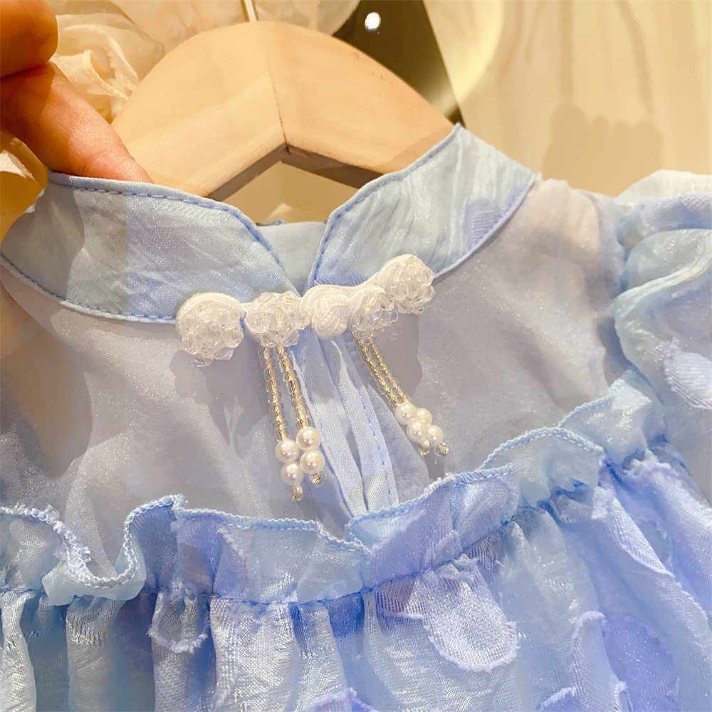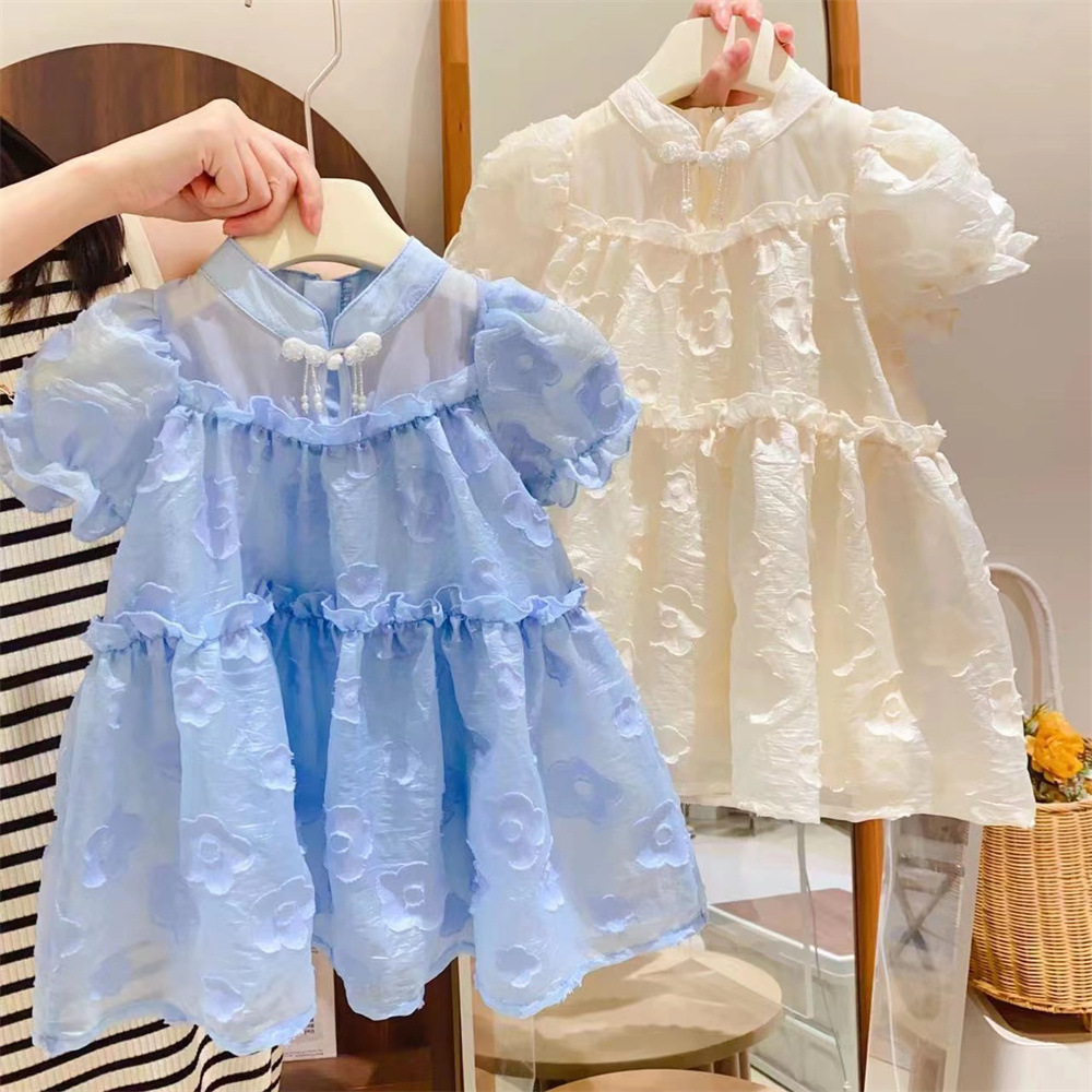 新品漫画女主女童泡泡短袖国风盘扣提花公主裙2025中小童夏装