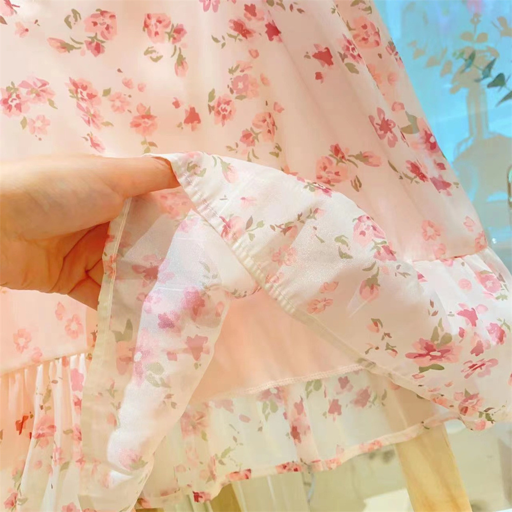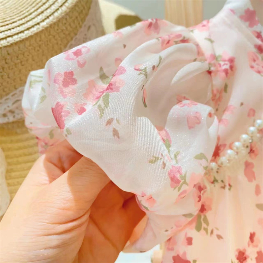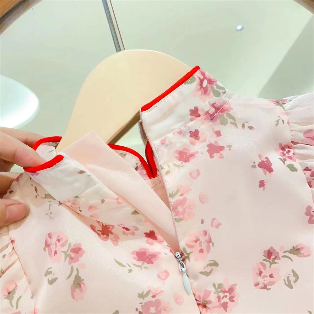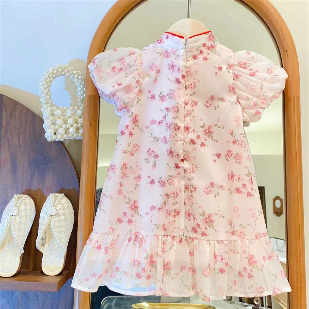 新品女童国风改良款碎花泡泡袖盘扣公主旗袍裙2025夏装连衣裙