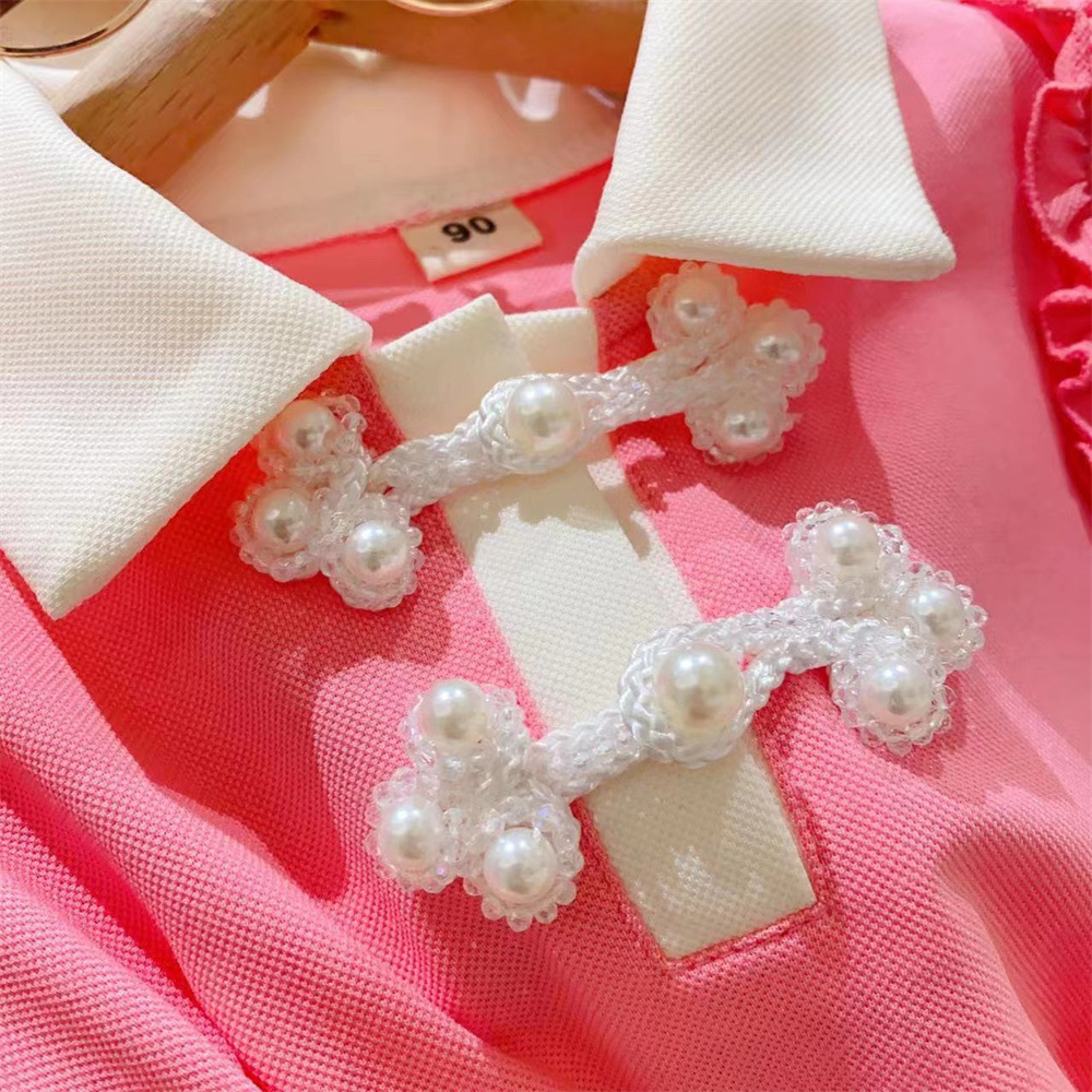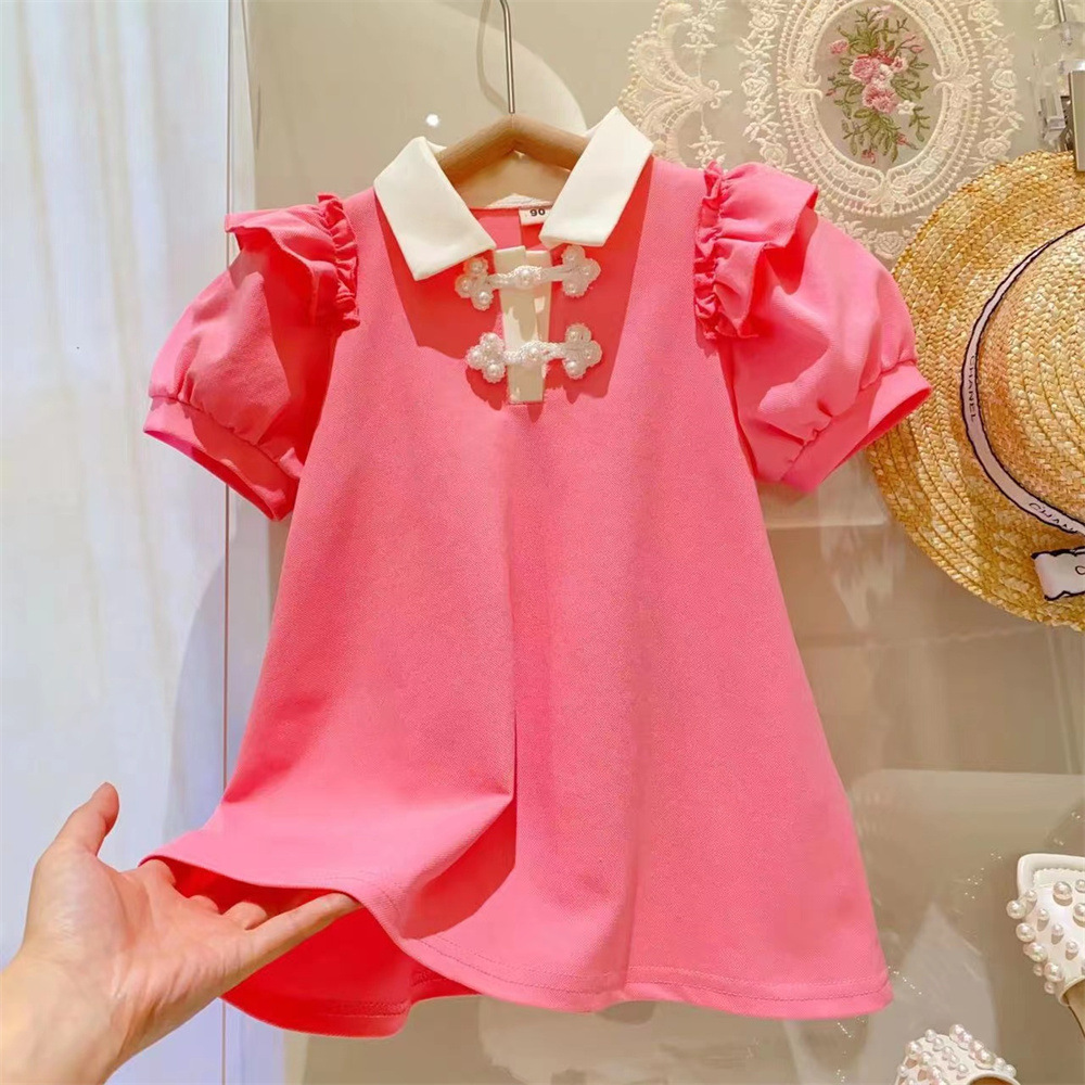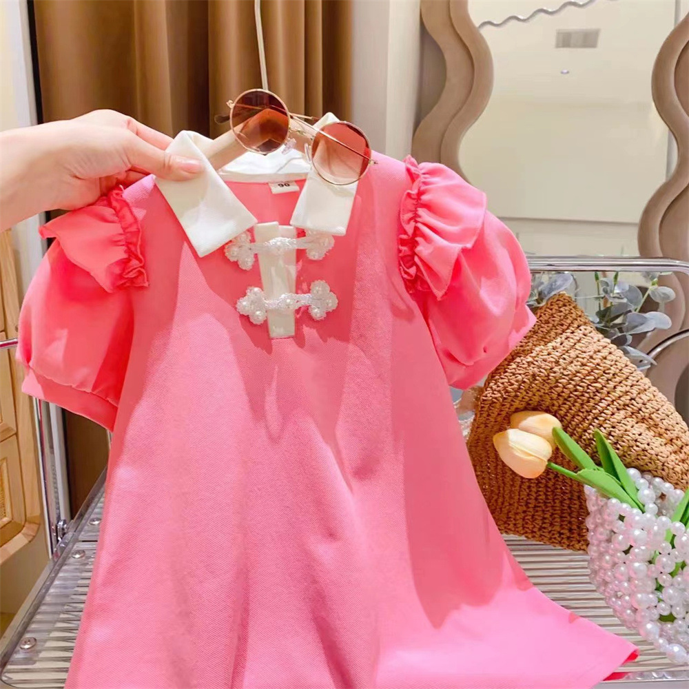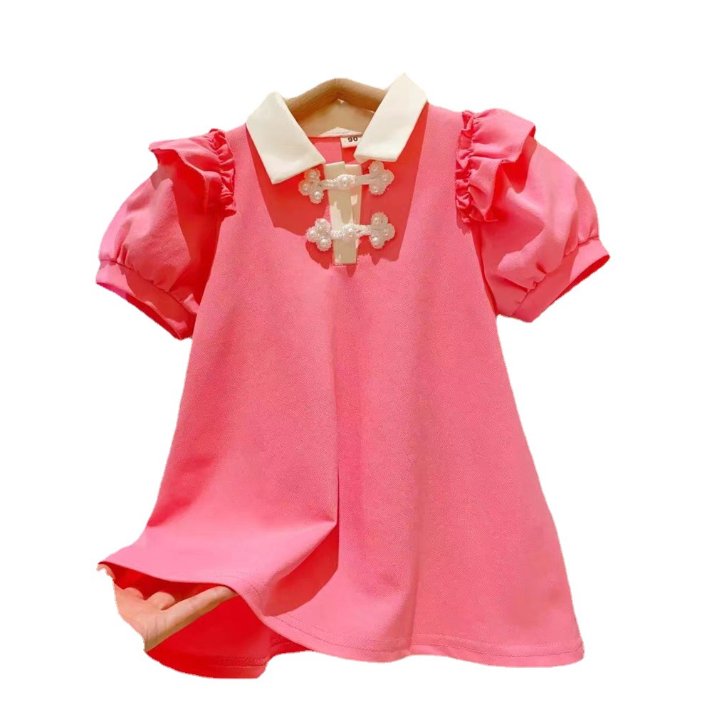 新品女童Polo领花边泡泡短袖洋气公主粉连衣裙2025夏装