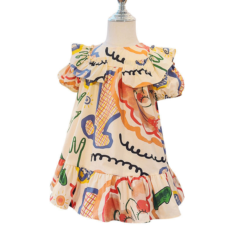 女童中小童裙子卡通图案甜美连衣裙2025夏季新款公主裙