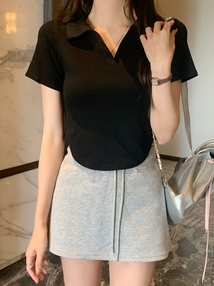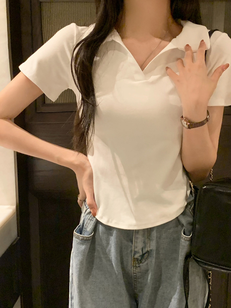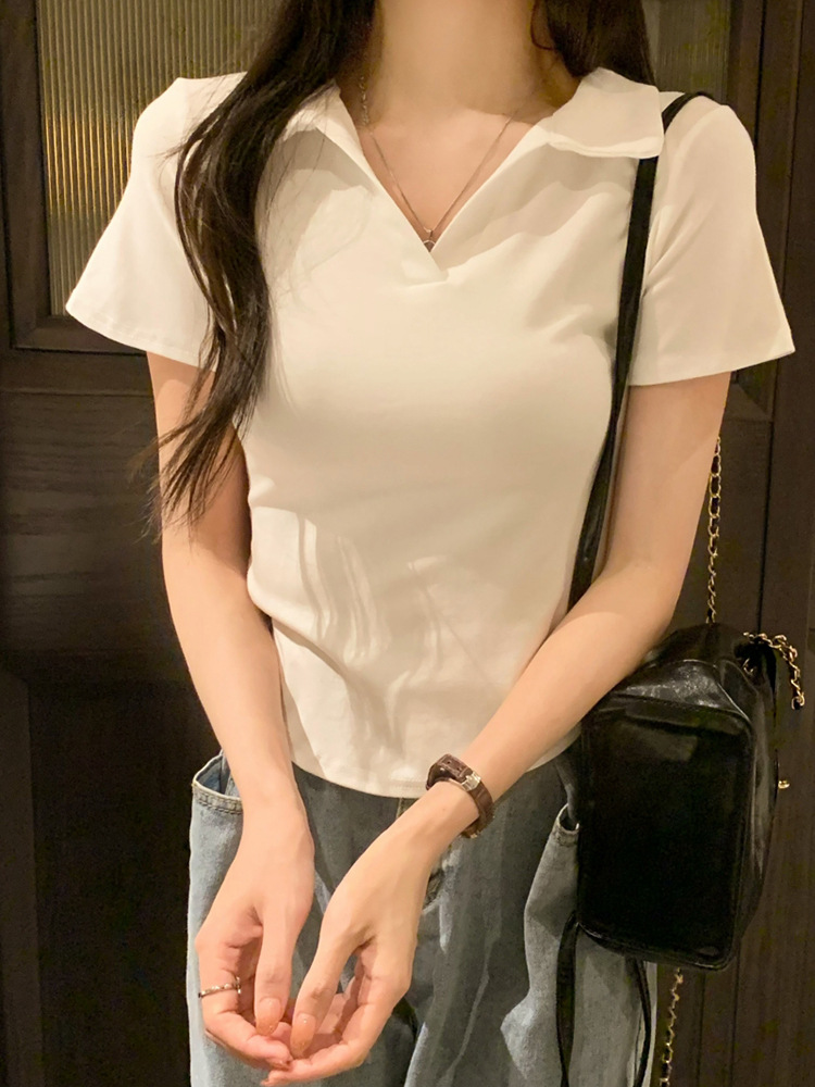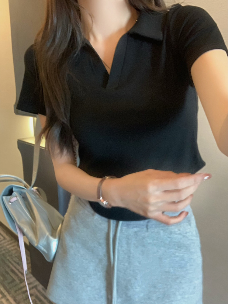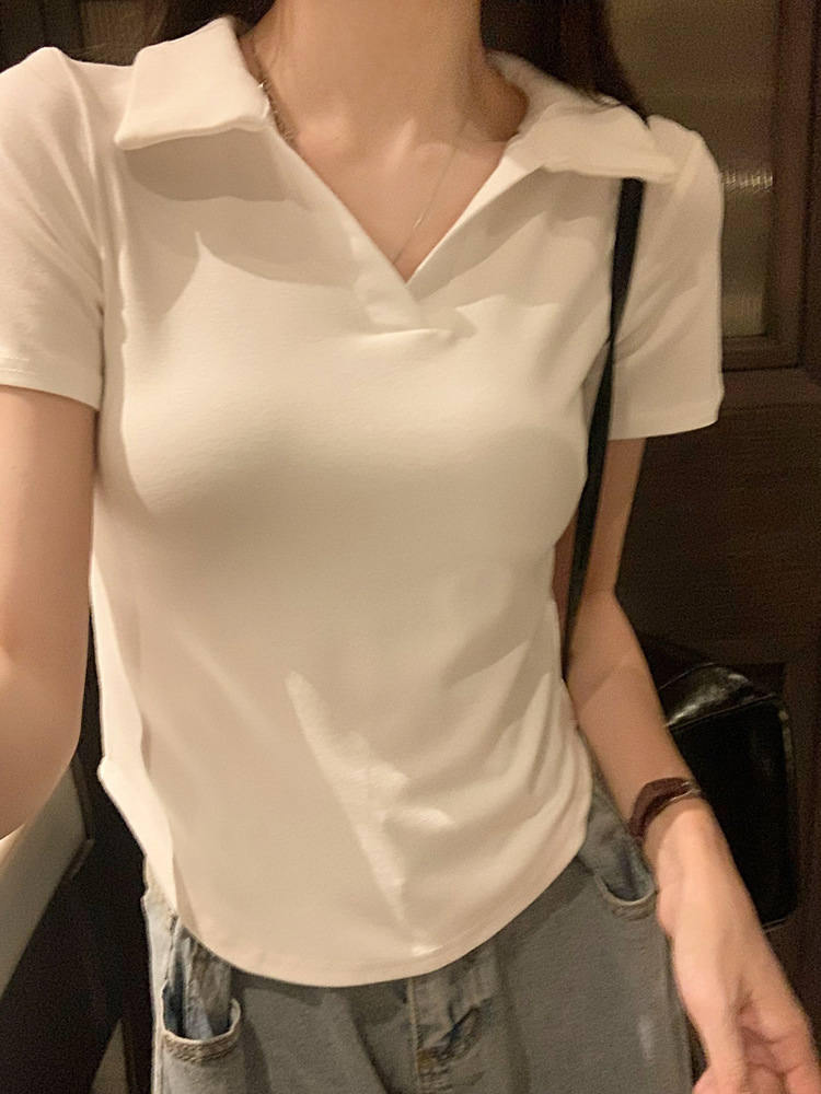 夏季设计感小众轻熟风修身显瘦短款T恤女纯棉打底衫短袖辣妹上衣