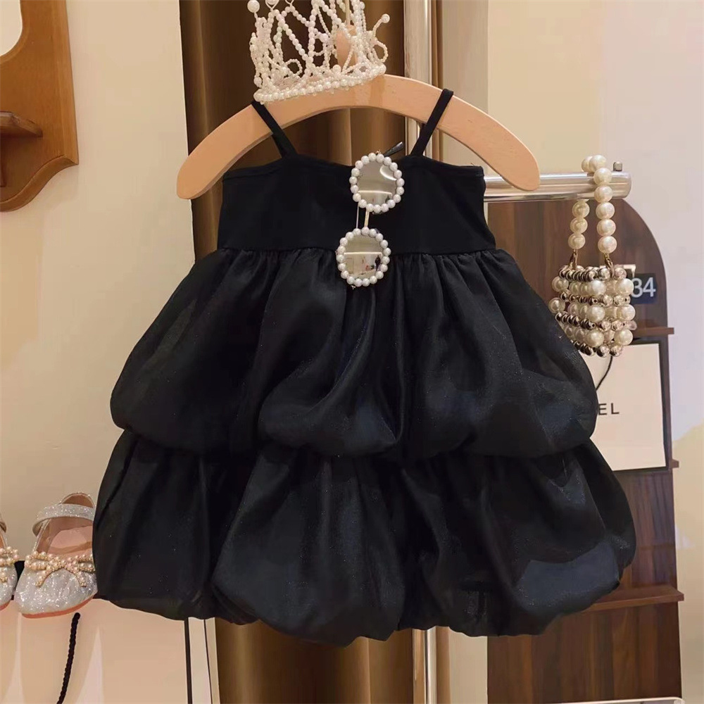 新品女童赫本风纯色气质洋气款吊带花苞蛋糕裙2025夏装连衣裙