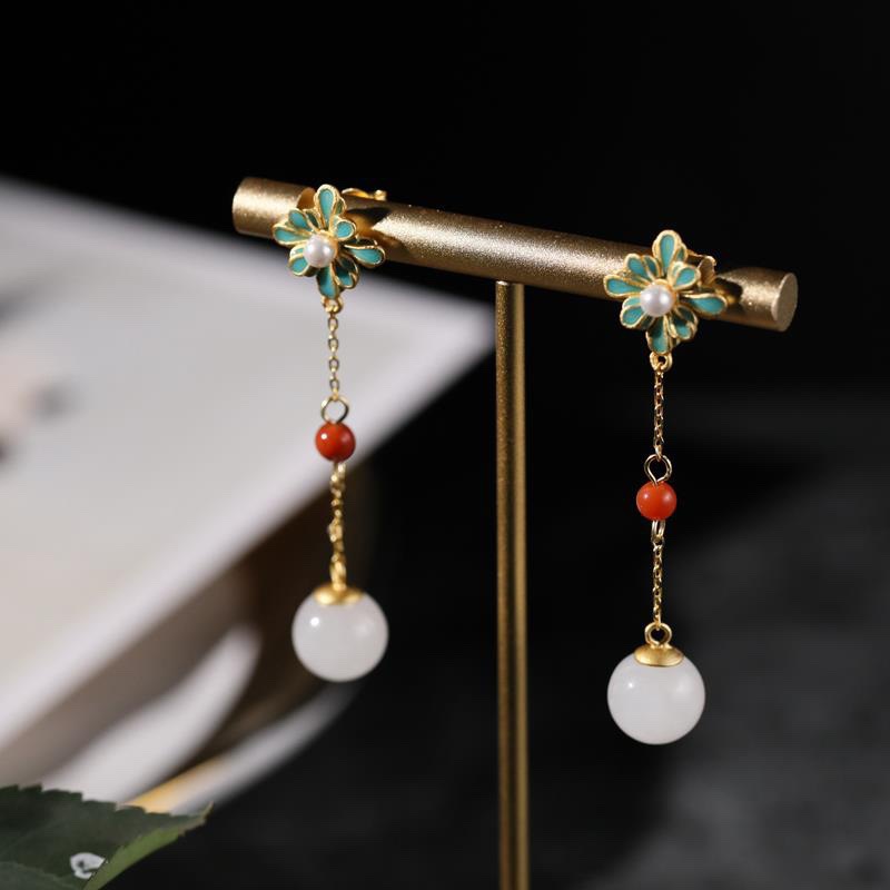 南方南方纯银饰品和田女式民族风圆脸显瘦优雅耳线耳环耳坠