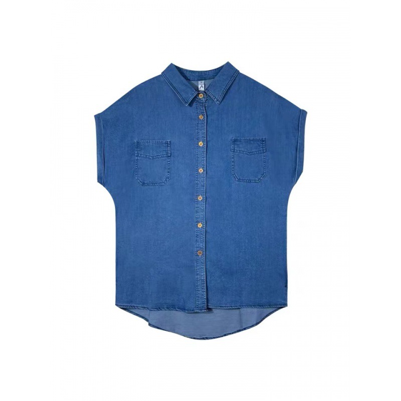 天丝蝙蝠袖牛仔衬衫女夏季宽松短袖 衬衣设计感小众外套
