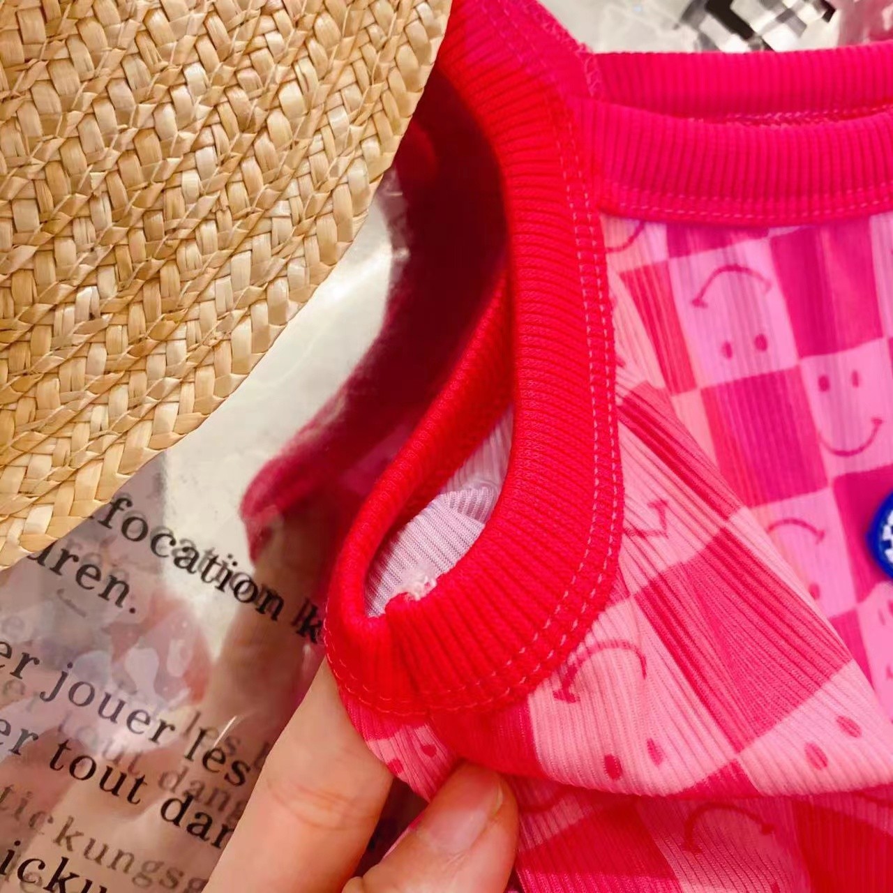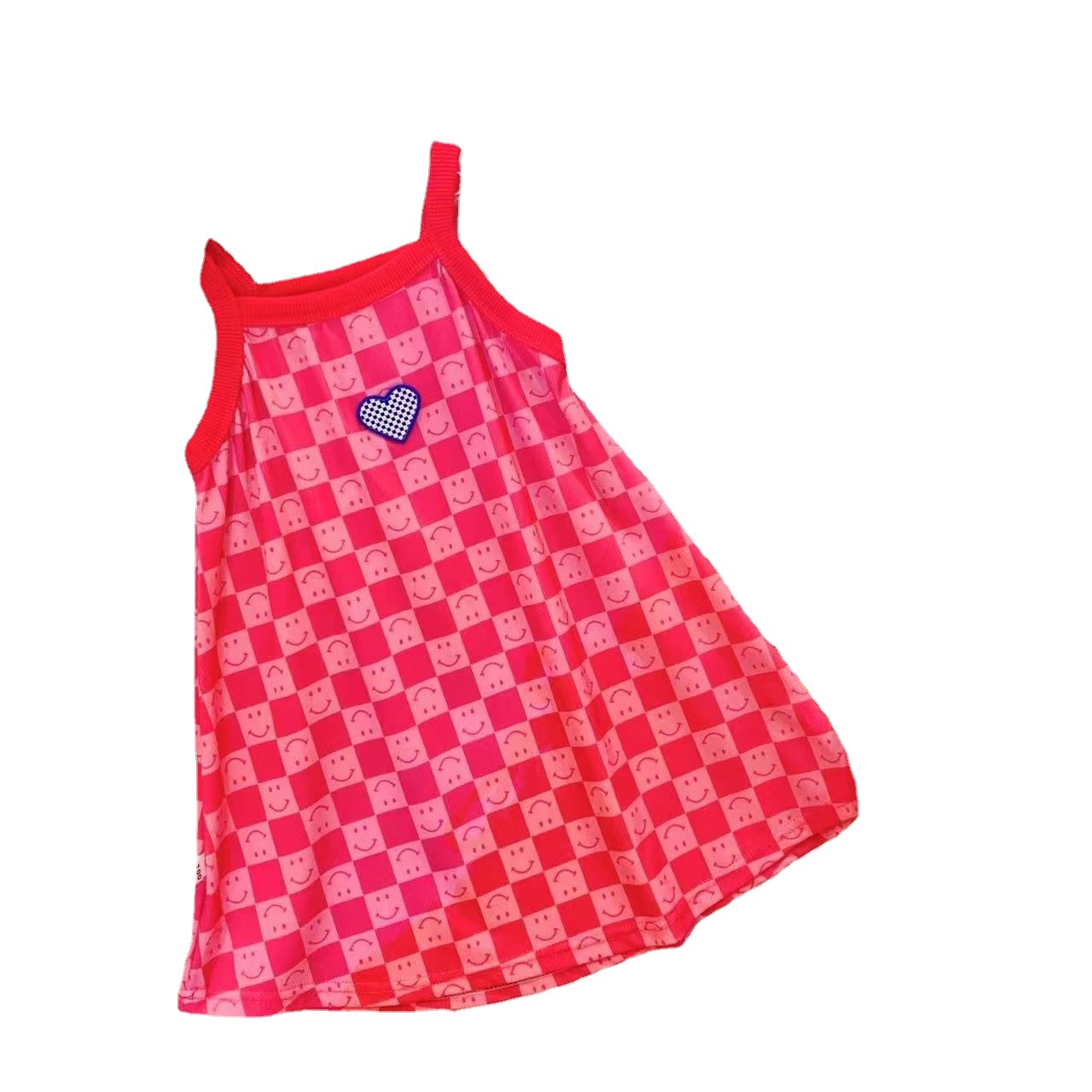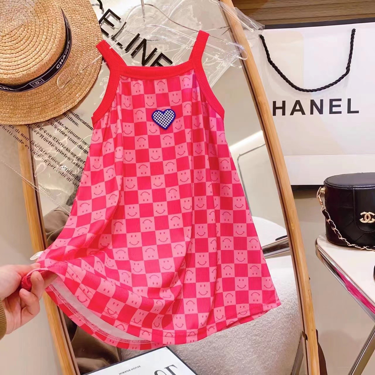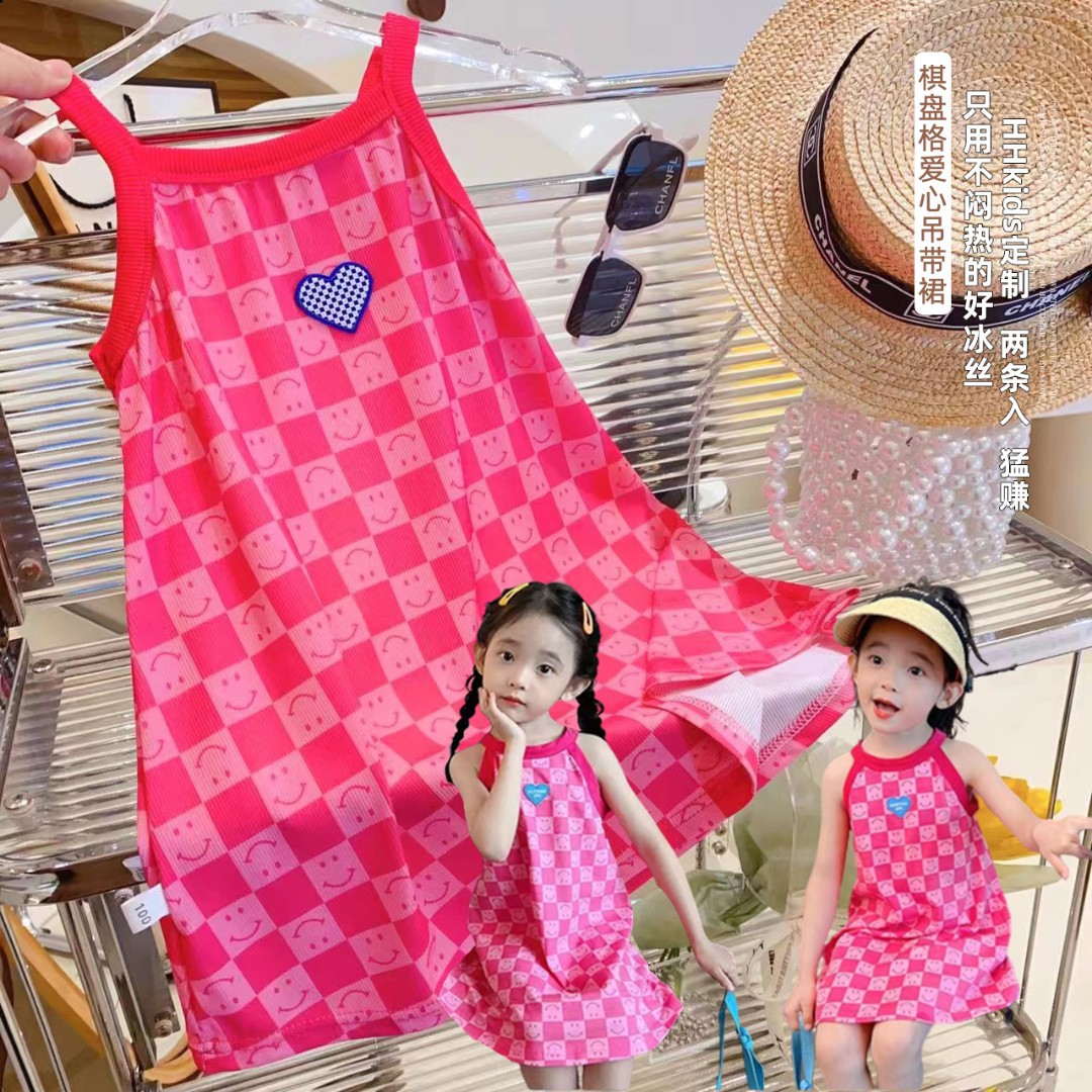 新品女童爱心笑脸棋盘格沙滩风酷辣吊带公主裙2025夏装连衣裙