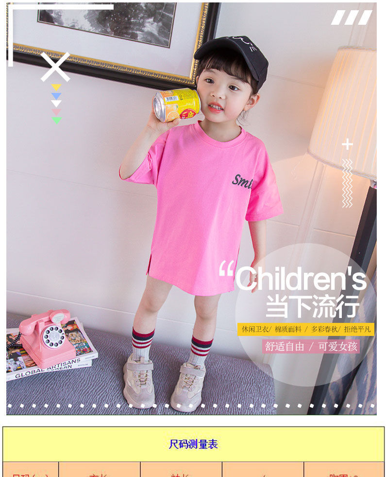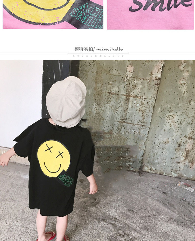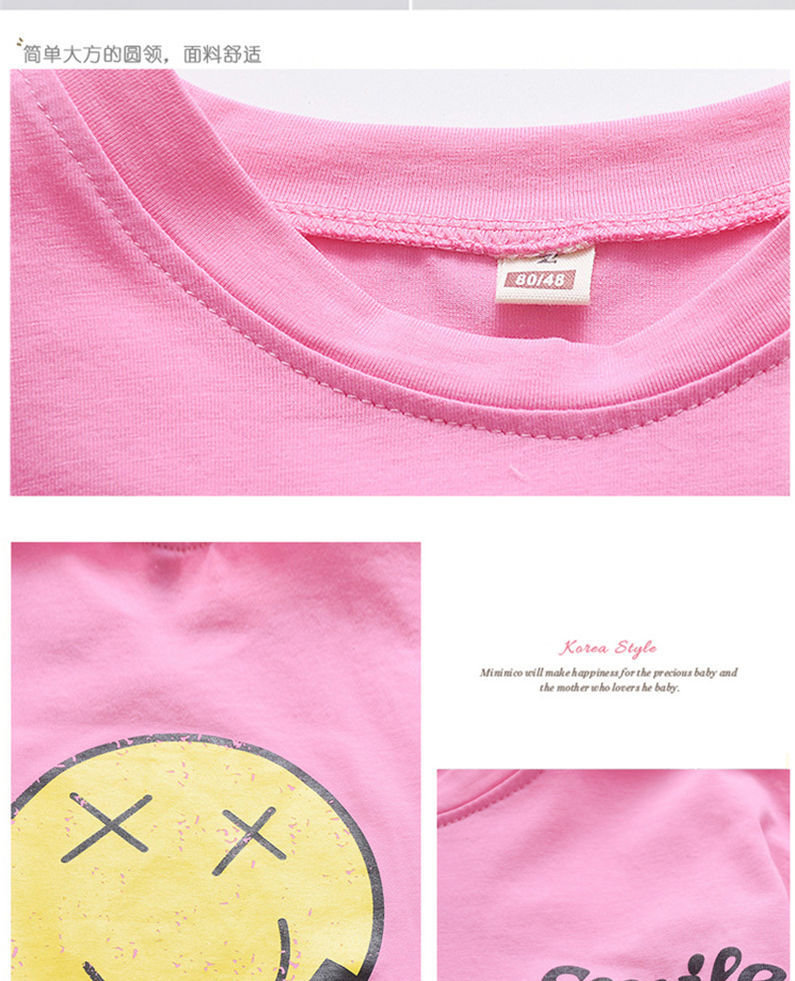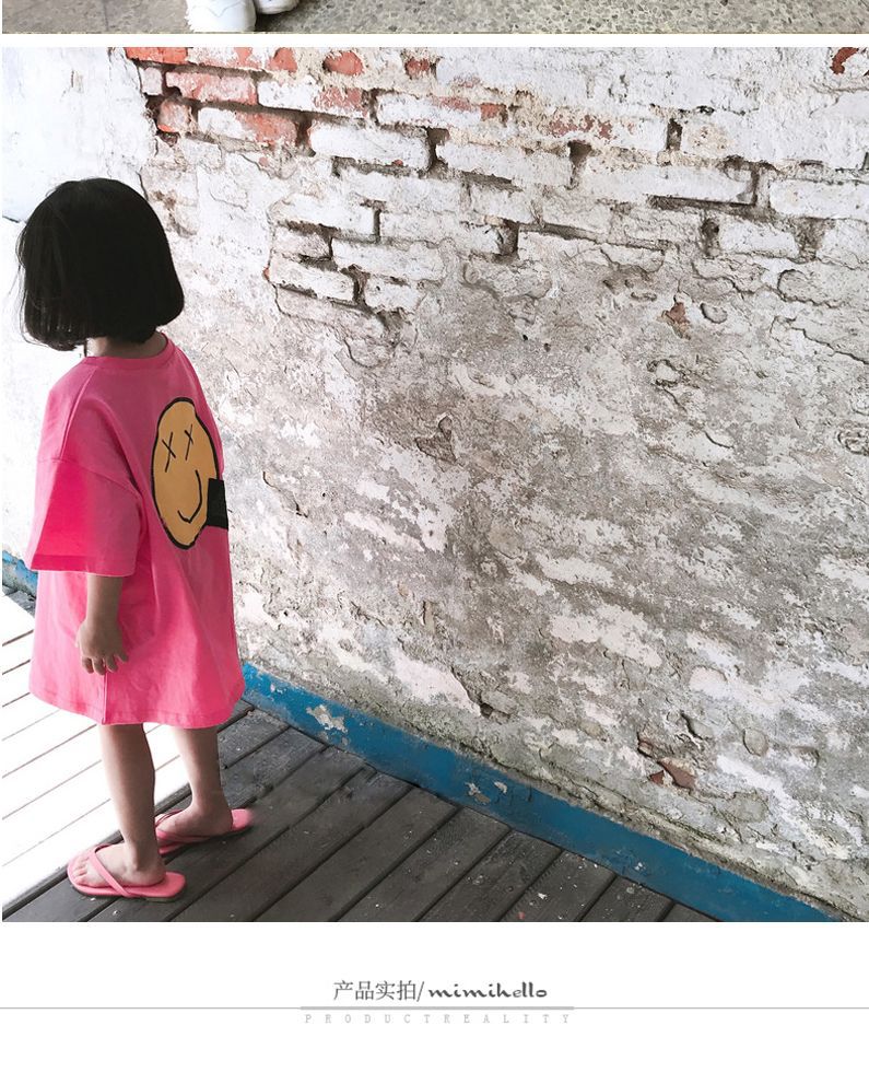 韩国童装女童长款T恤2025夏季新品欧美风笑脸宽松短袖卫衣裙潮款