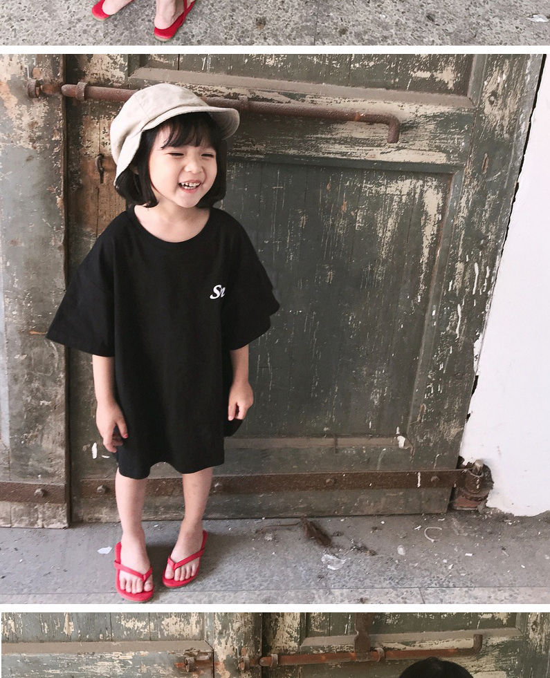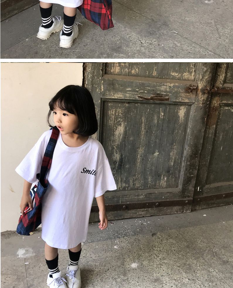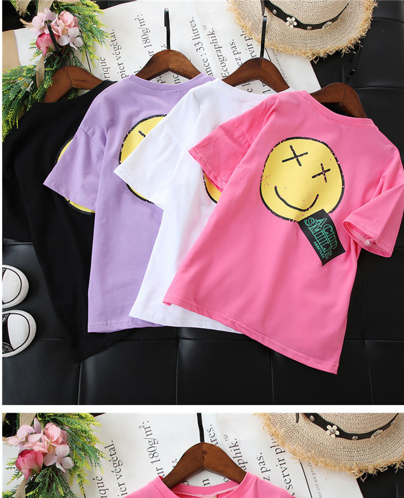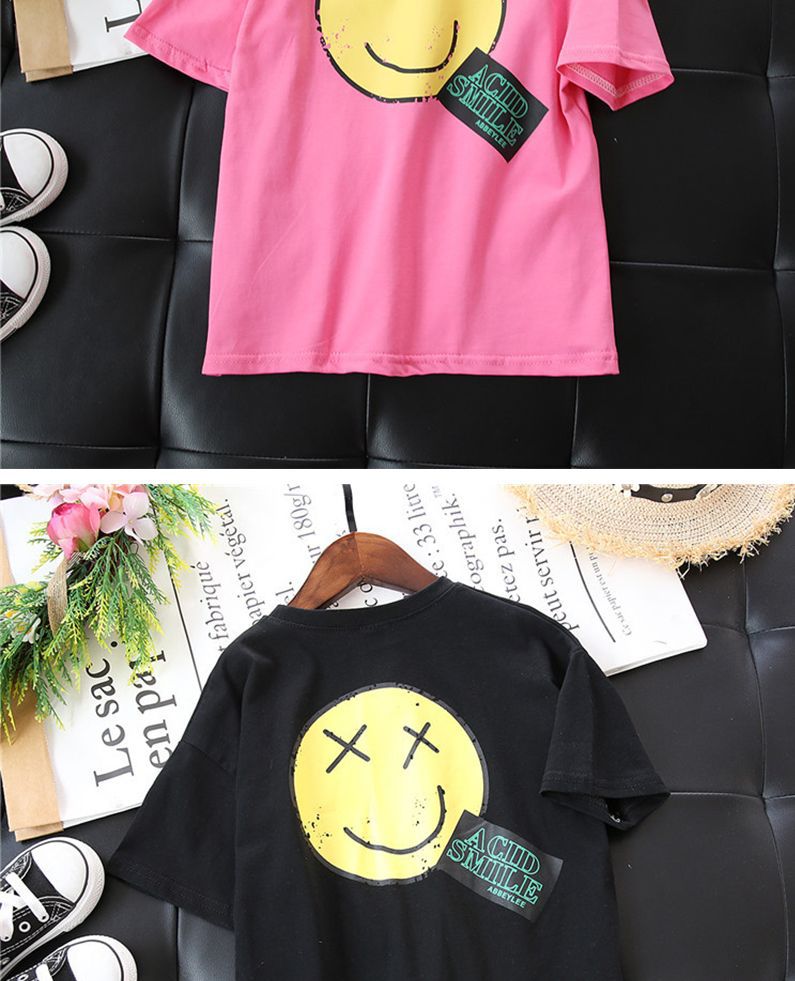 韩国童装女童长款T恤2025夏季新品欧美风笑脸宽松短袖卫衣裙潮款