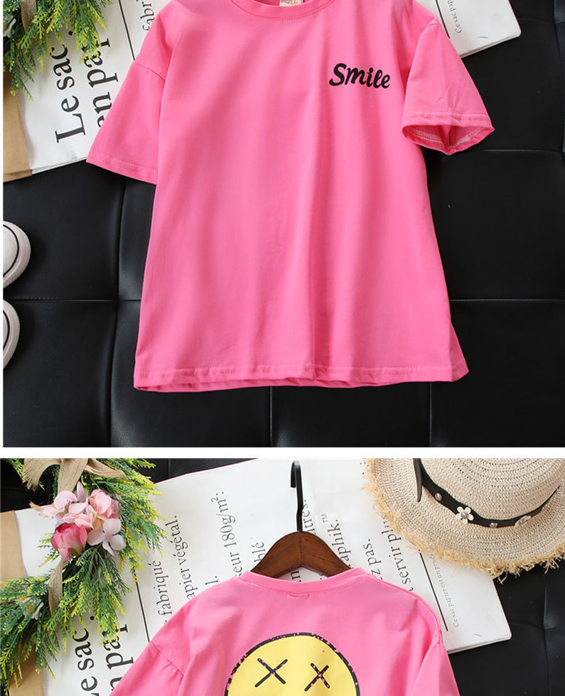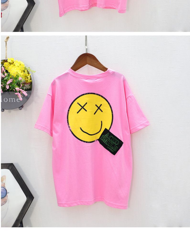 玫红smile笑脸T恤