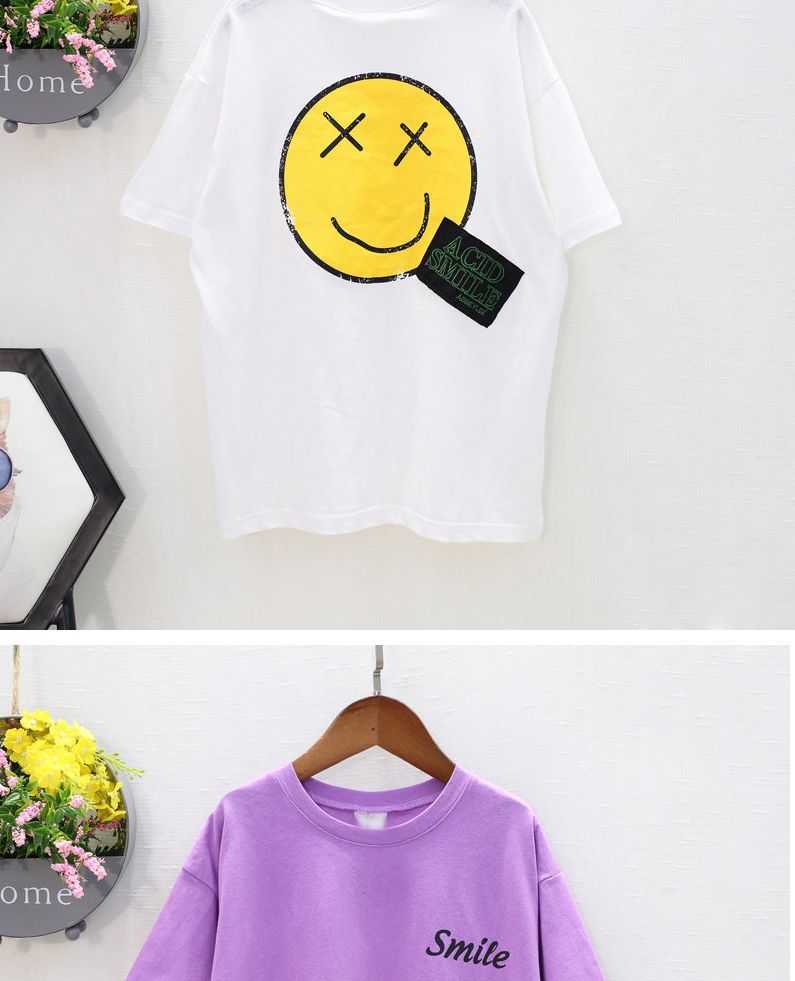 紫色smile笑脸T恤