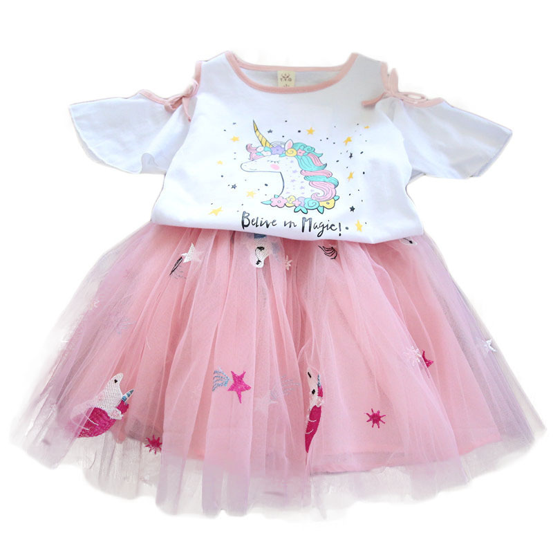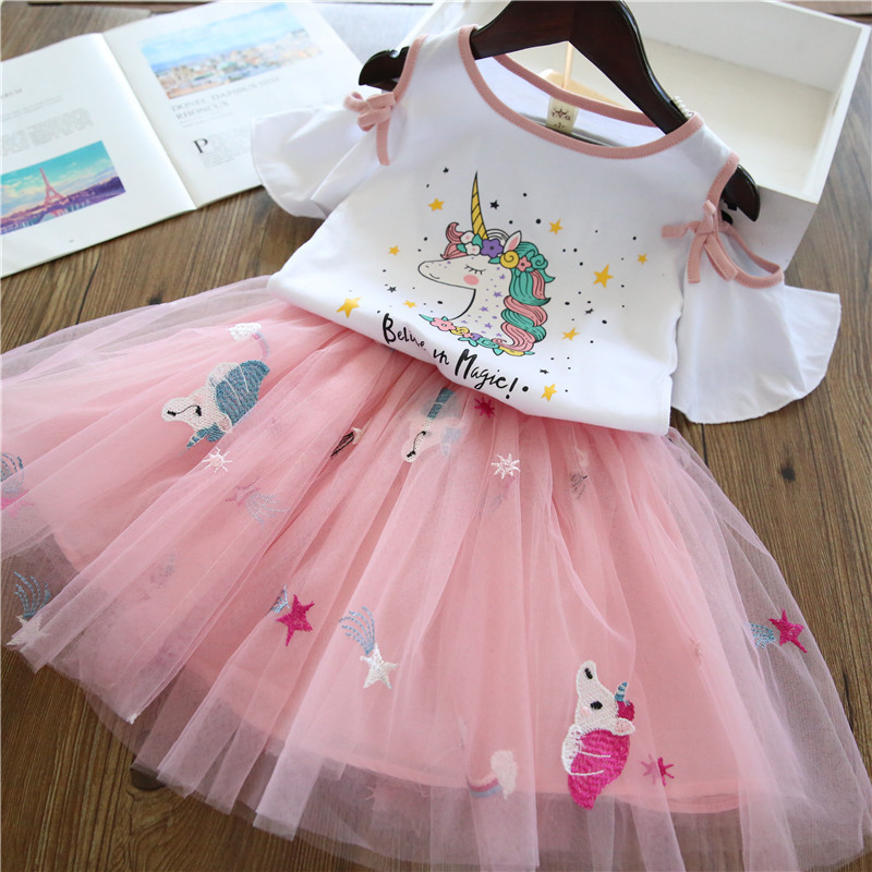 新品夏装新款韩版女童卡通印花短袖T恤+蓬蓬纱裙两件套装