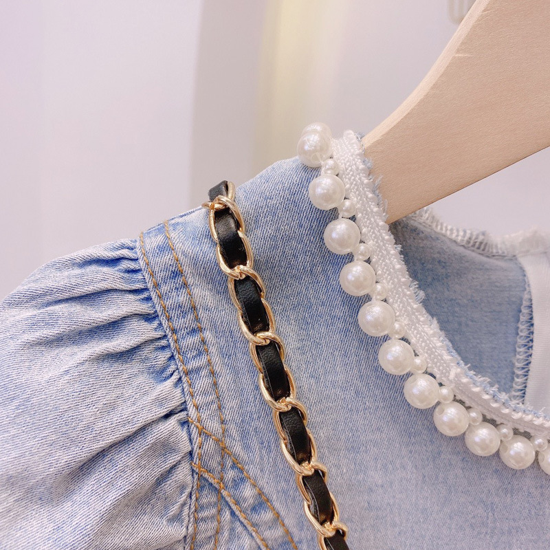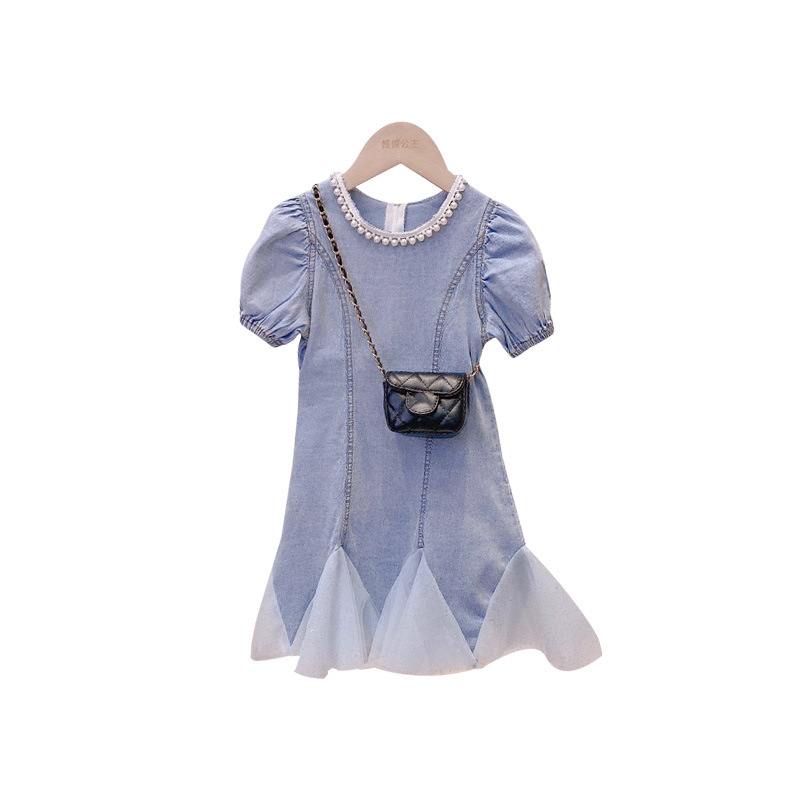 女童牛仔连衣裙夏季洋气公主裙女宝宝短袖裙子夏装时髦儿童鱼尾裙