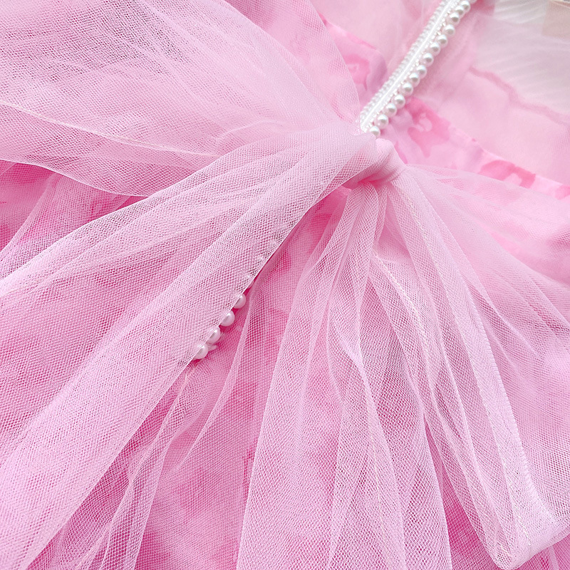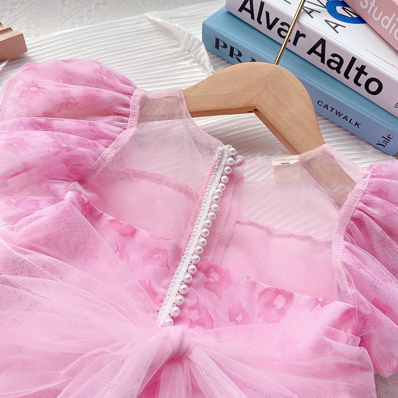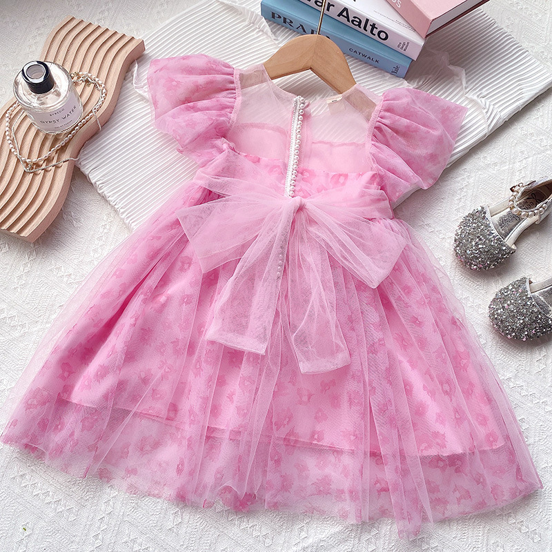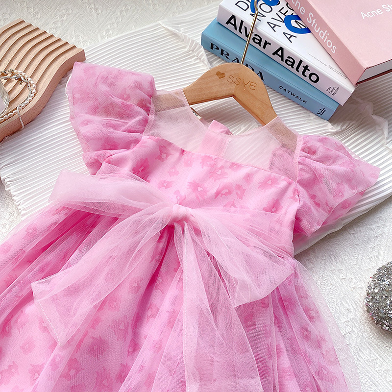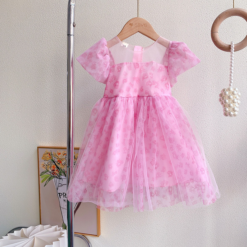 小女孩洋气公主裙2025夏季新款儿童连衣裙韩版宝宝短袖花朵网纱裙