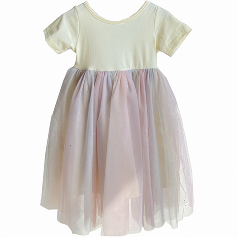 外贸 2025夏款女童宝宝彩虹色公主蓬蓬纱露背连衣裙