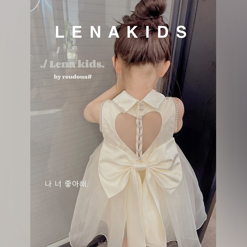 2025夏女童洋气时髦蝴蝶结爱心公主连衣裙儿童蓬蓬网纱裙裙子