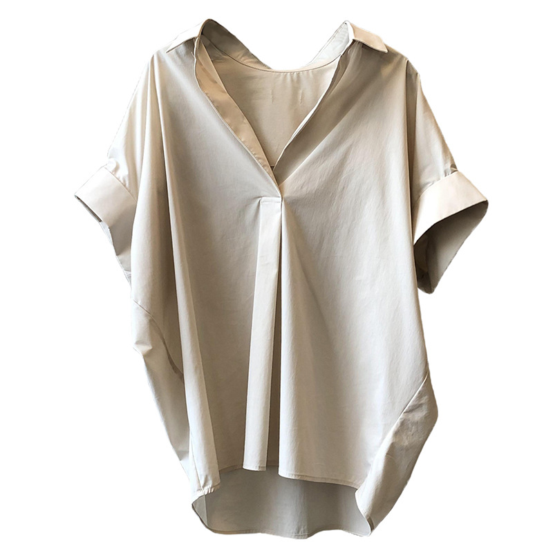 言双韩版短袖衬衫女夏季新款气质宽松套头设计感衬衣女80228