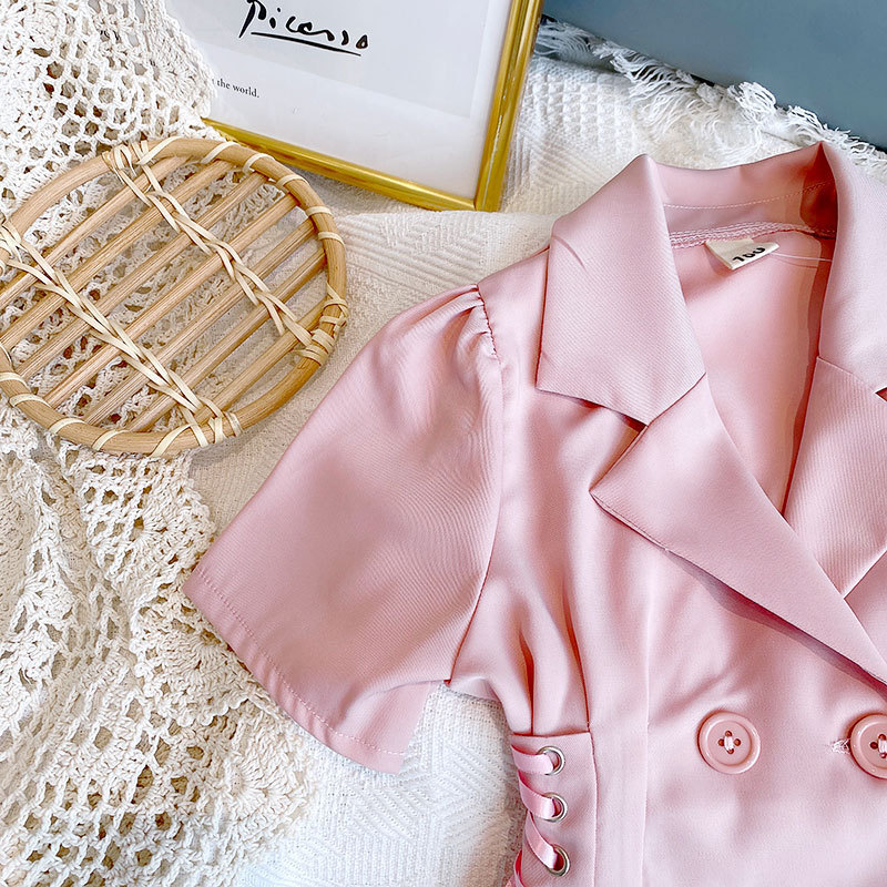外贸 女童外套2025夏款女宝宝白色泡泡袖西装连衣裙