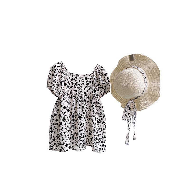 送帽子2025年新品夏款女童韩版洋气小女孩方领碎花连衣裙子