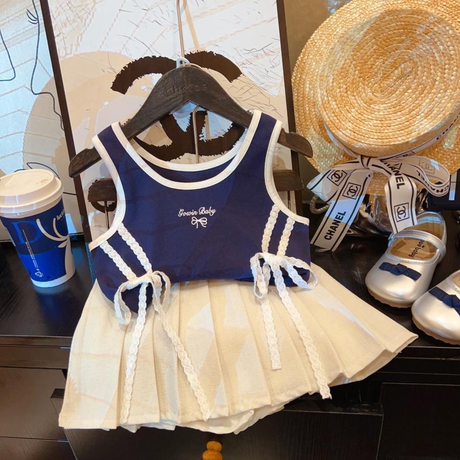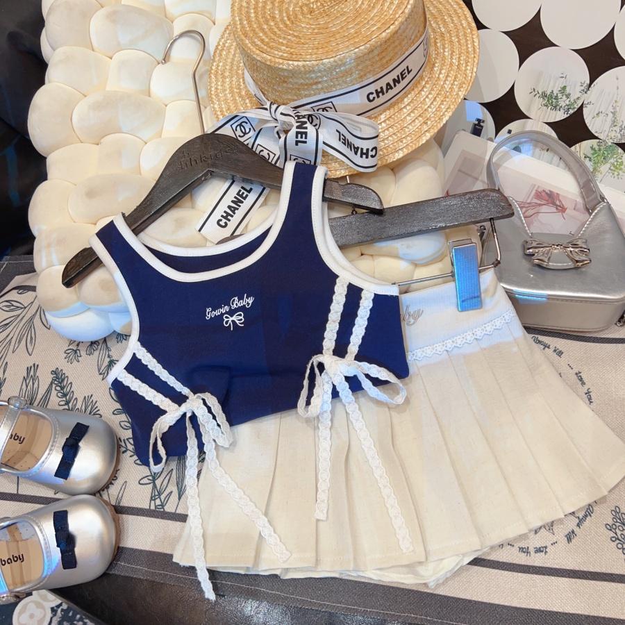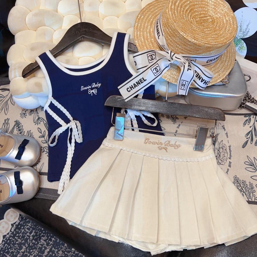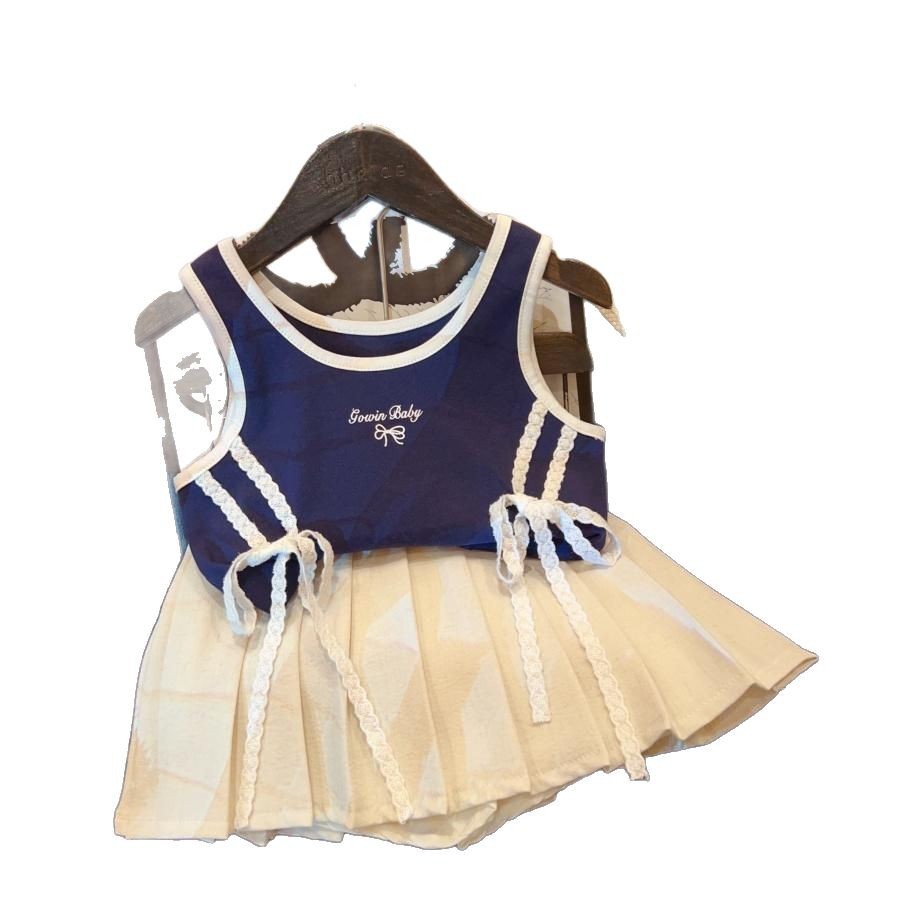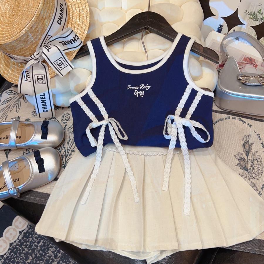 新品女童夏季套装洋气时髦2025蝴蝶结背心百褶裙无袖韩版两件套