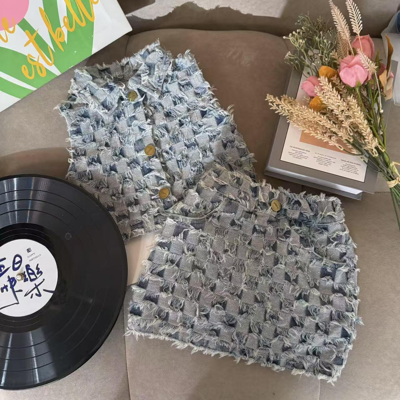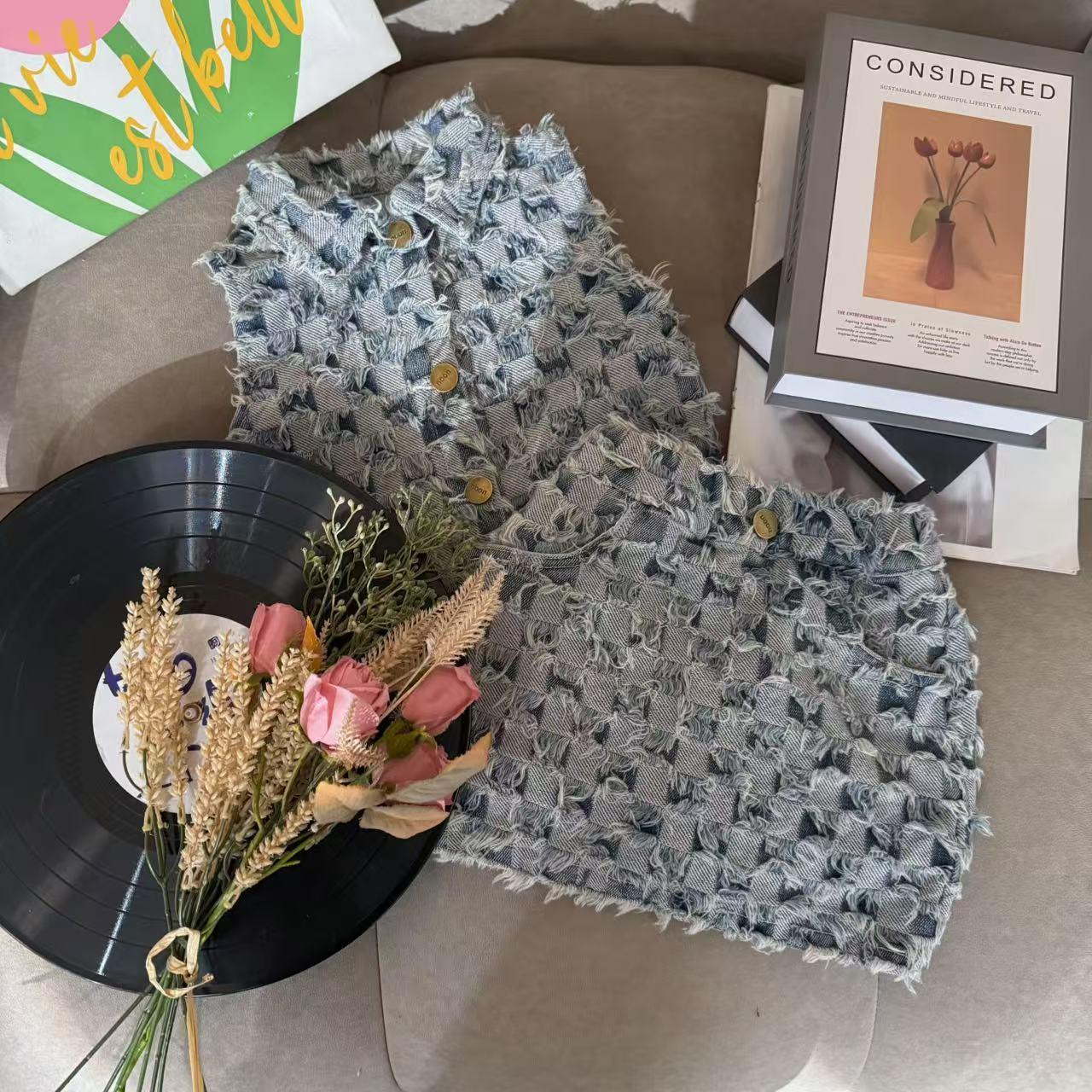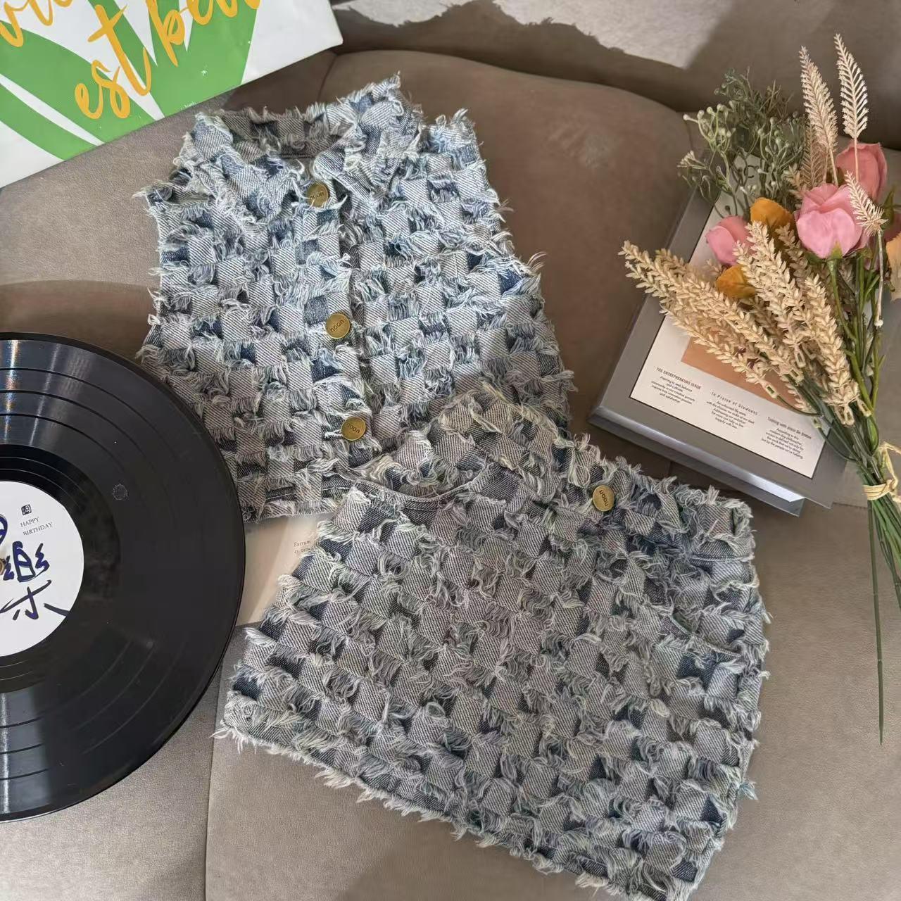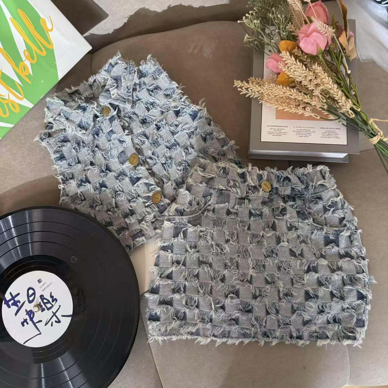 2025女童洋气套装小香风牛仔套装春夏季女复古港风名媛气质两件套