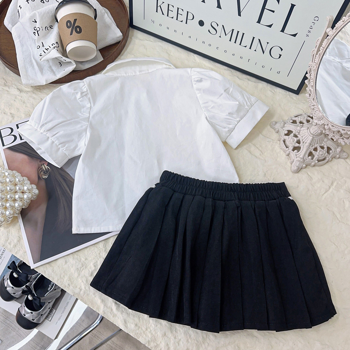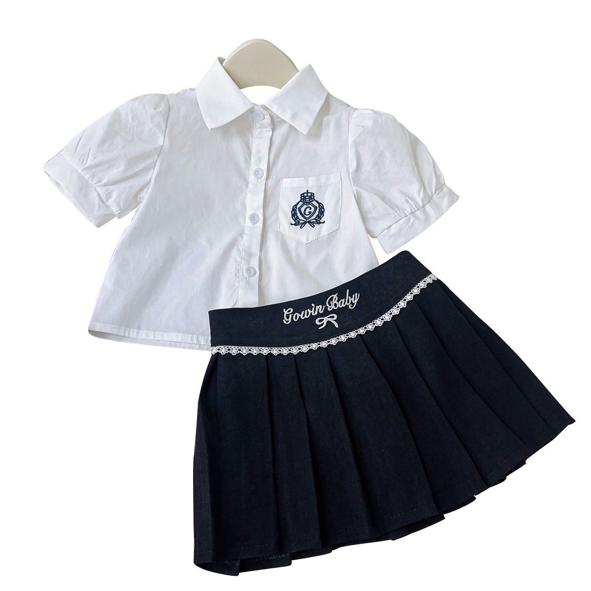 女童夏季新款洋气时尚休闲百搭衬衫上衣百褶2025儿童短裙裤套装