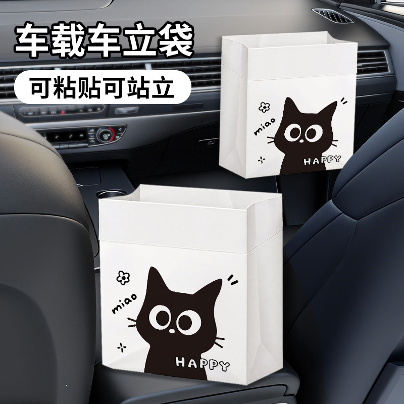 车载垃圾袋车立袋黑喵趣自立式粘贴式清洁袋桌面垃圾袋加厚厨房