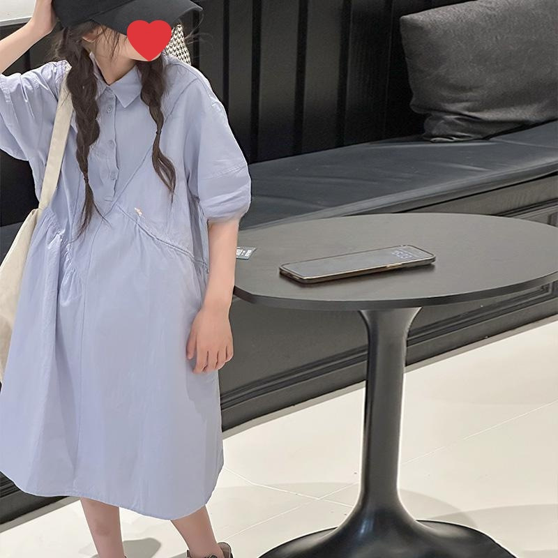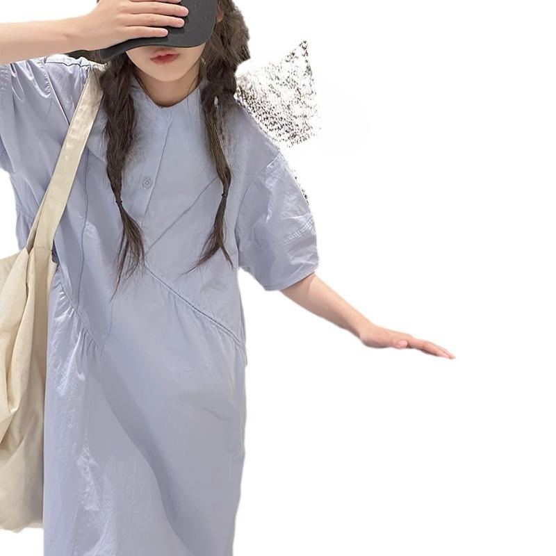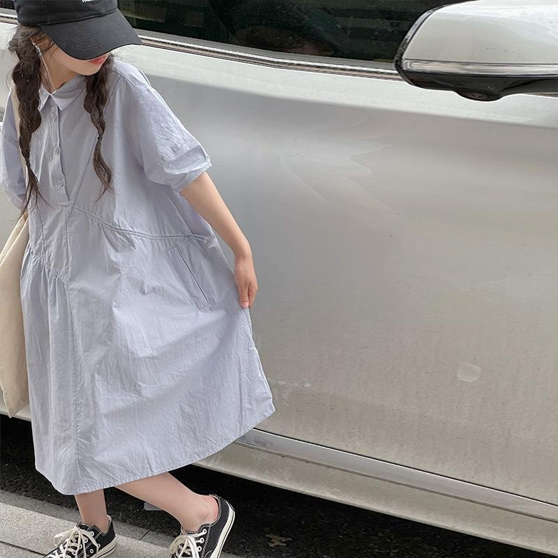 女童韩版休闲连衣裙夏季新款中大童洋气学院风时髦衬衫连衣裙