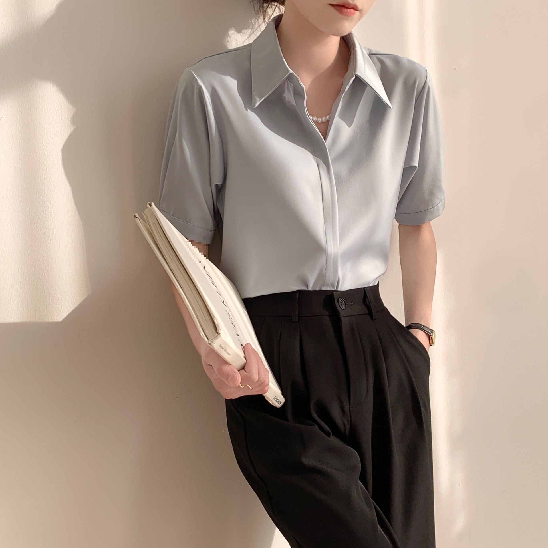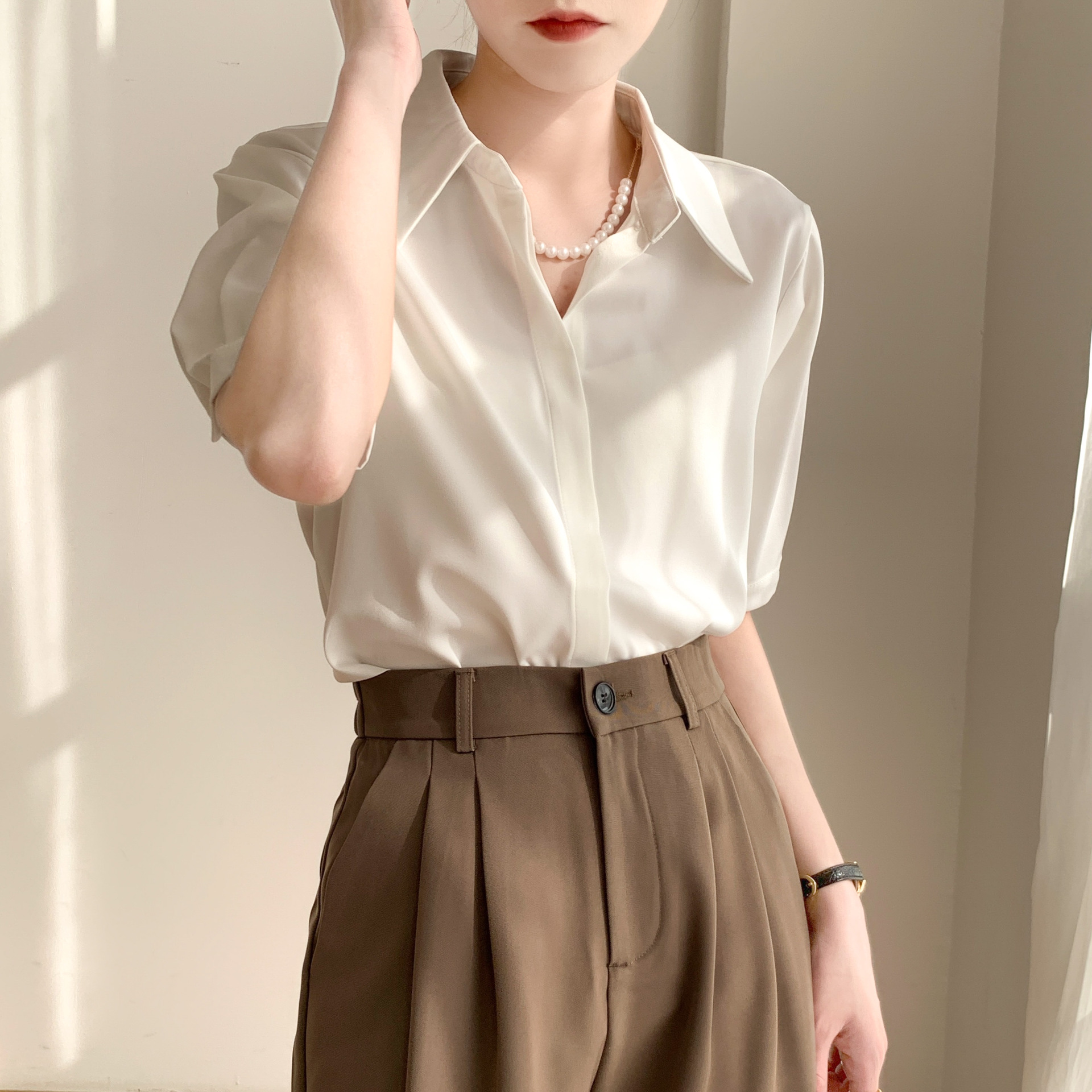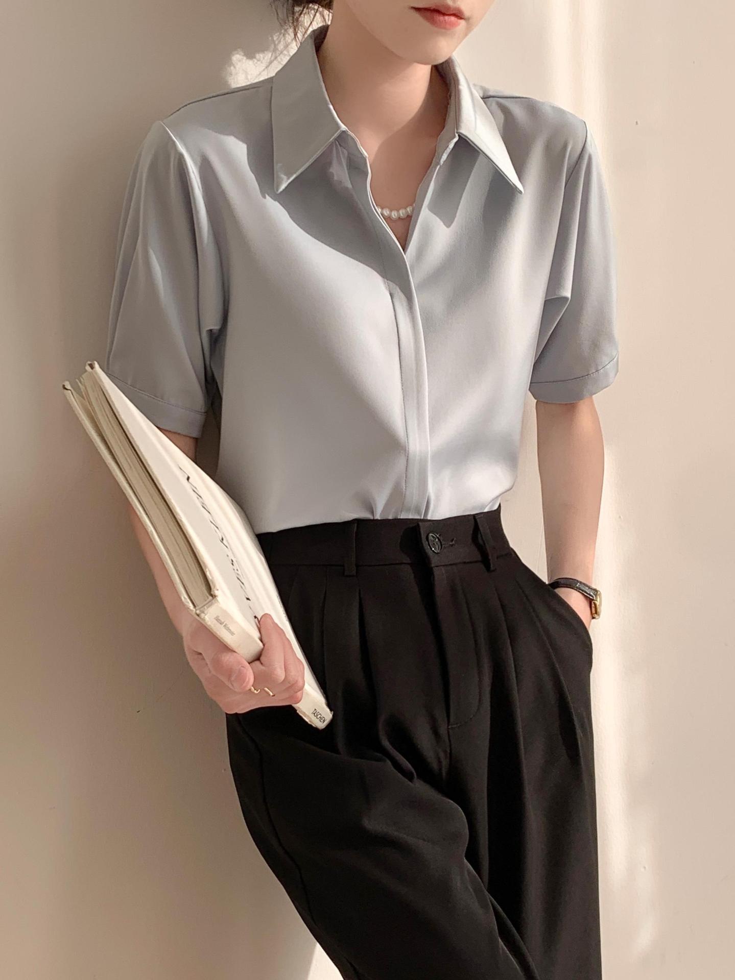白色衬衫女短袖夏季薄款职业气质设计感小众中袖抗皱免烫衬衣上衣