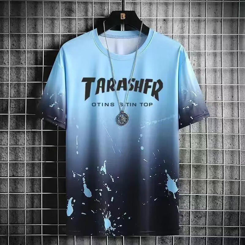 蓝色短袖t恤男生夏季新款潮流潮牌风ins宽松青少年时尚百搭上衣服