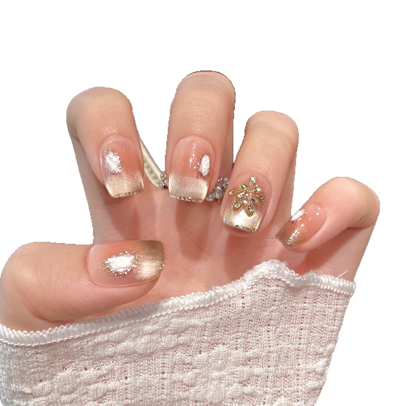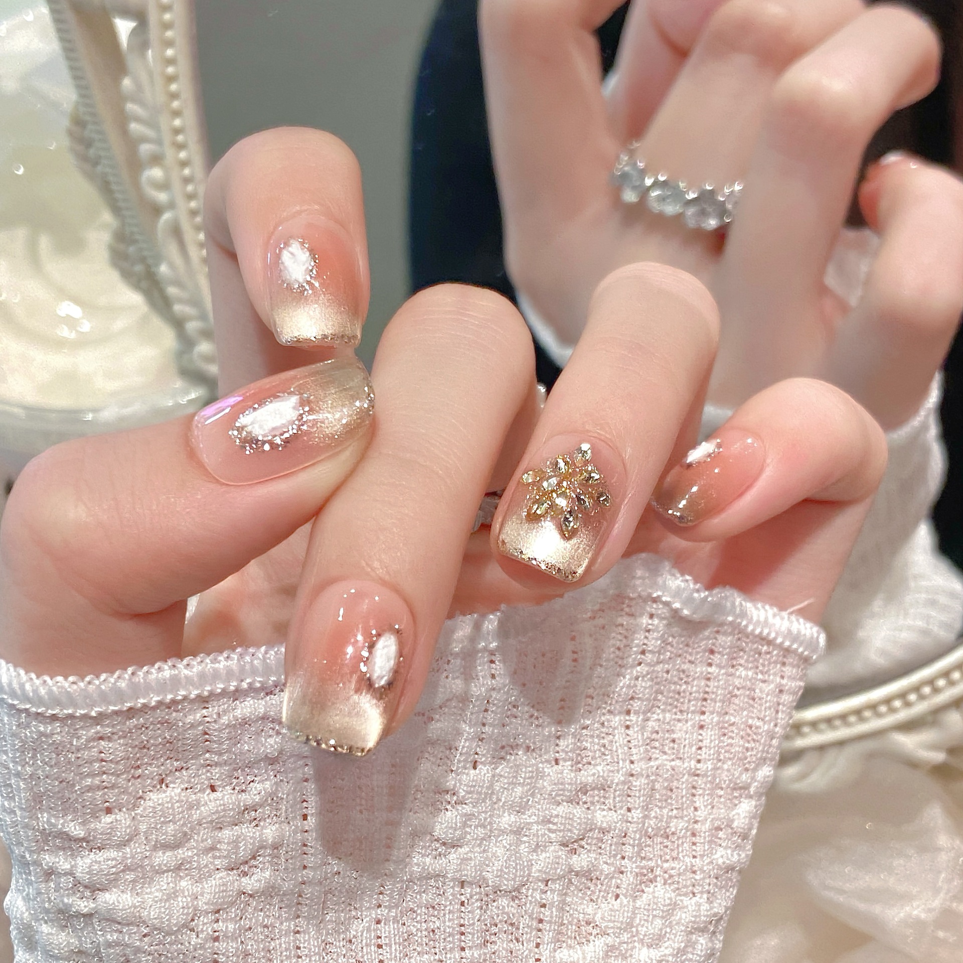 艺禾美甲 金枝琉璃贵气温婉渐变猫眼小法式香槟碎钻纯手工穿戴甲
