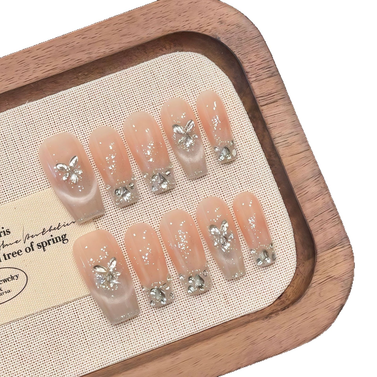 艺禾美甲 浮梦渐变法式晶石猫眼腮红晕染碎钻蝴蝶清冷感手工美甲