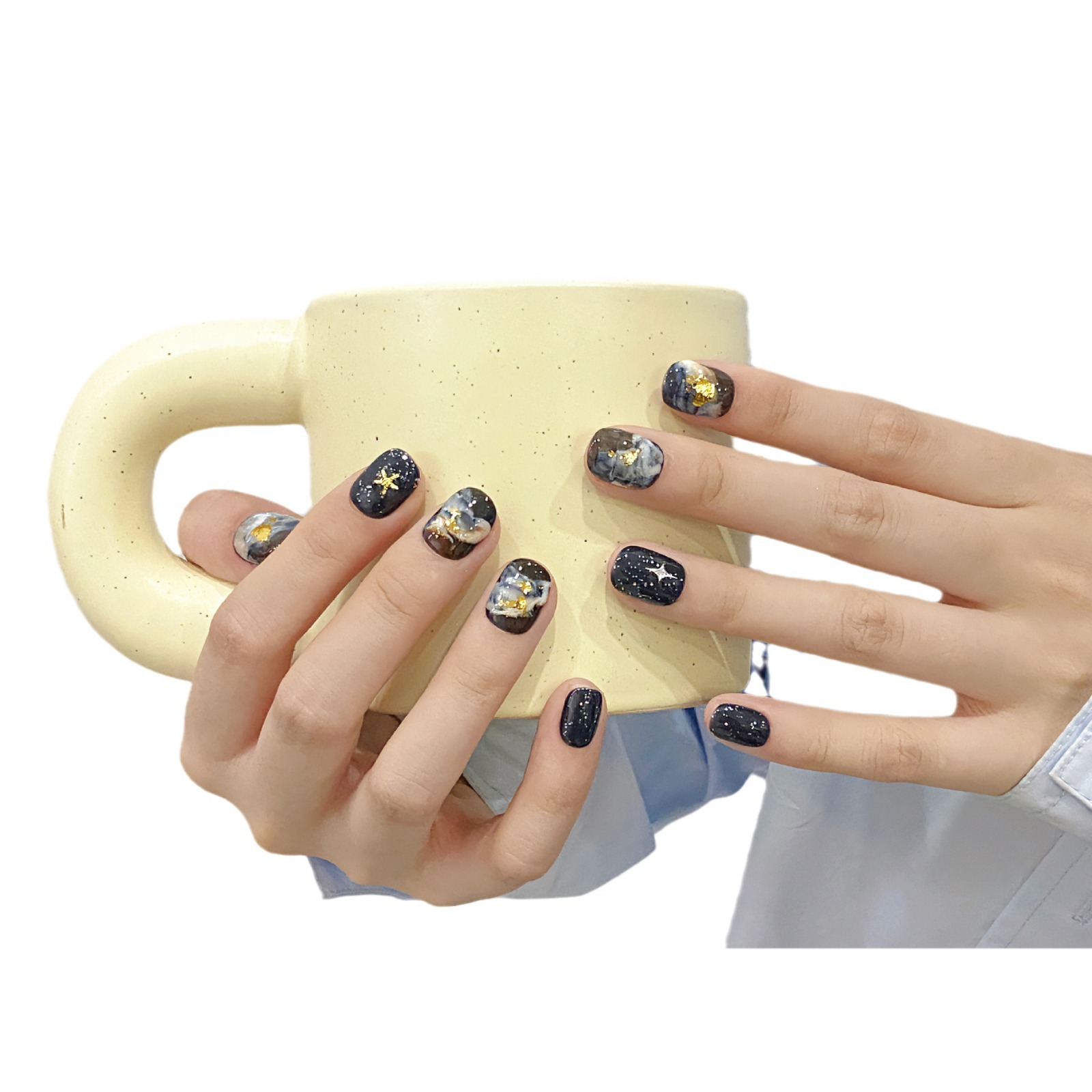 新款纯手工穿戴甲高级艺术童趣涂鸦手绘小众甜酷短款美甲贴