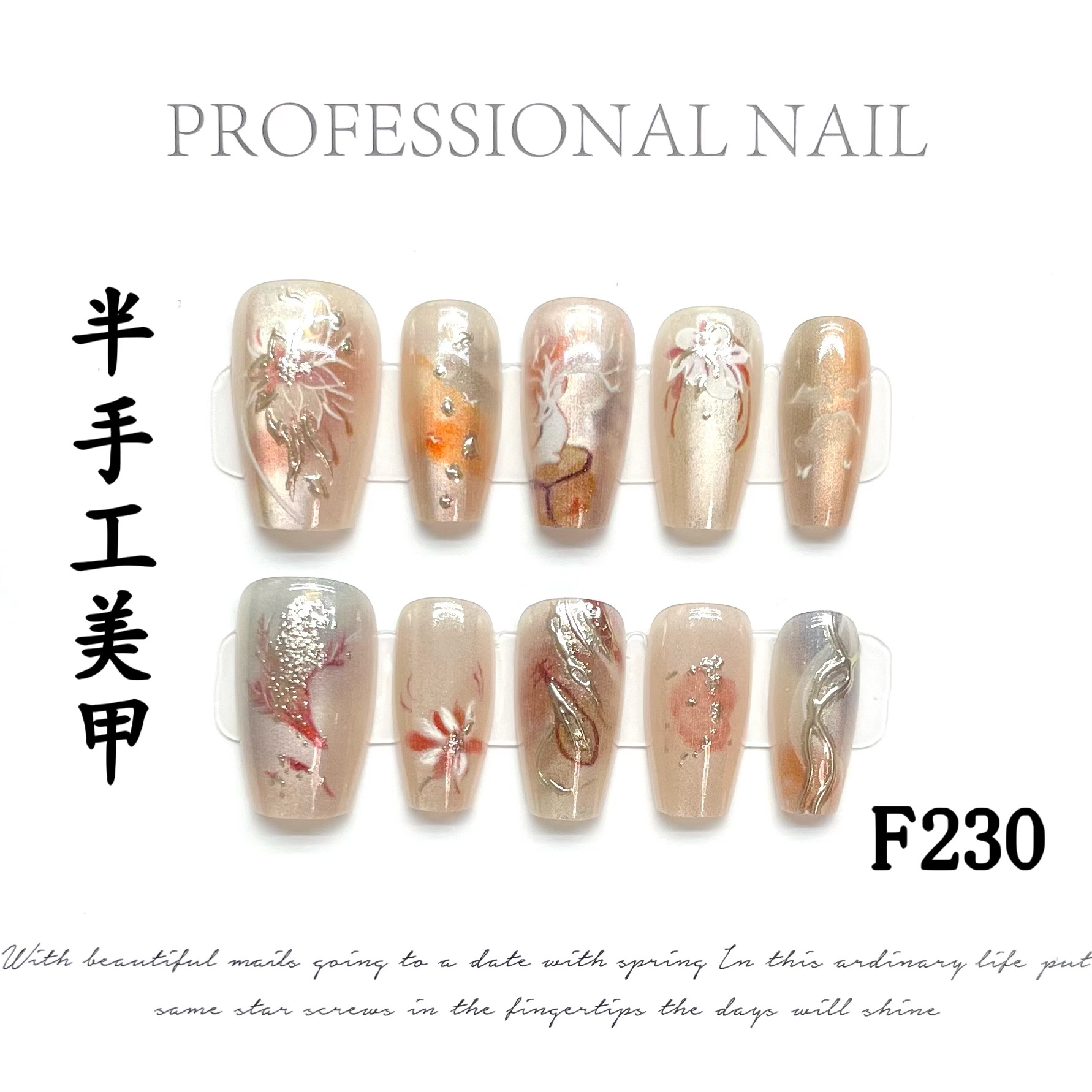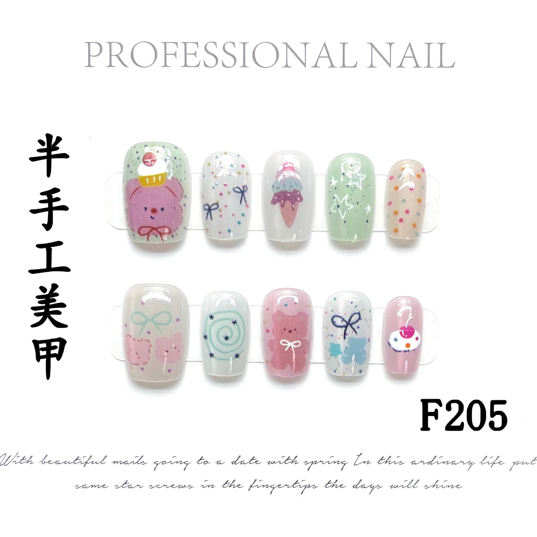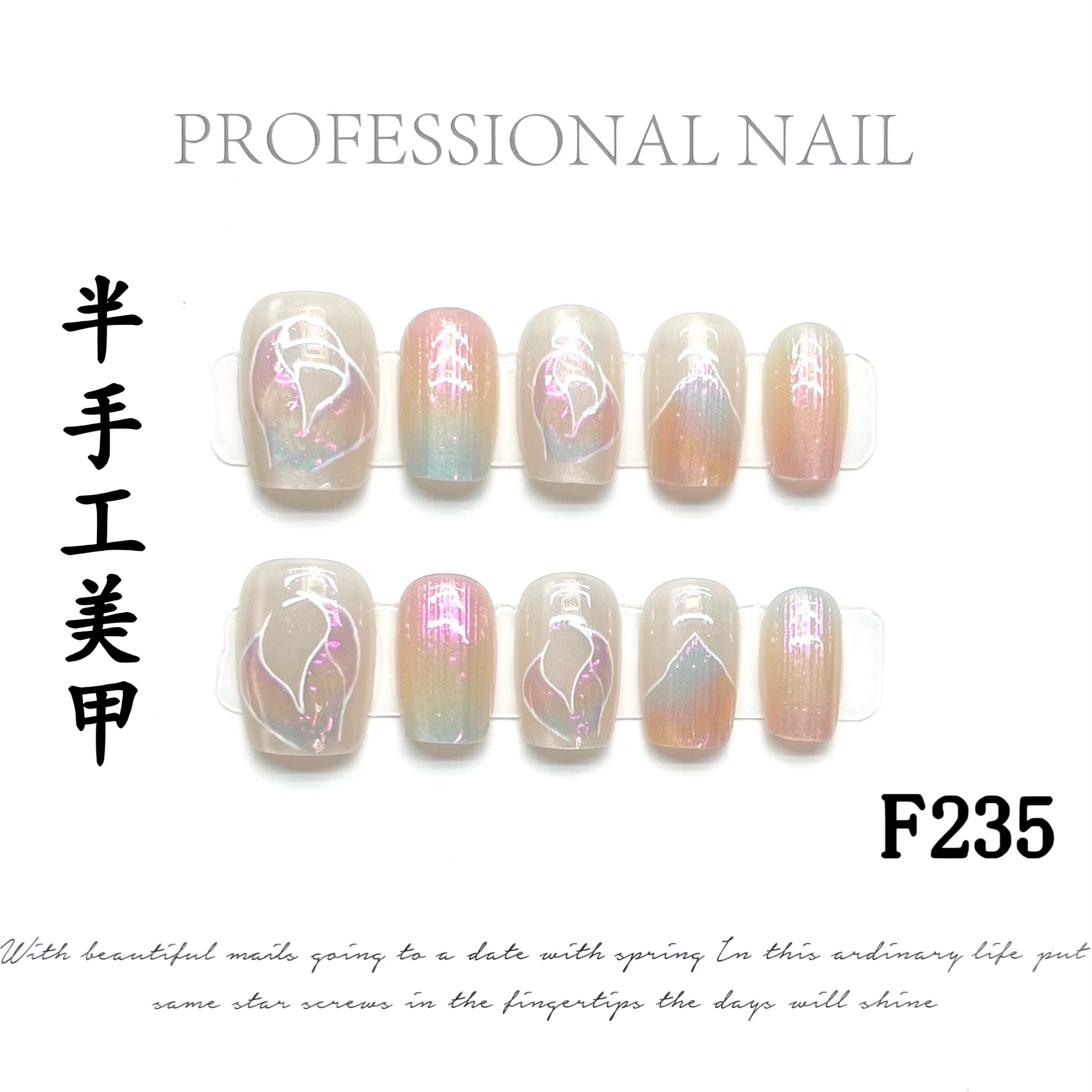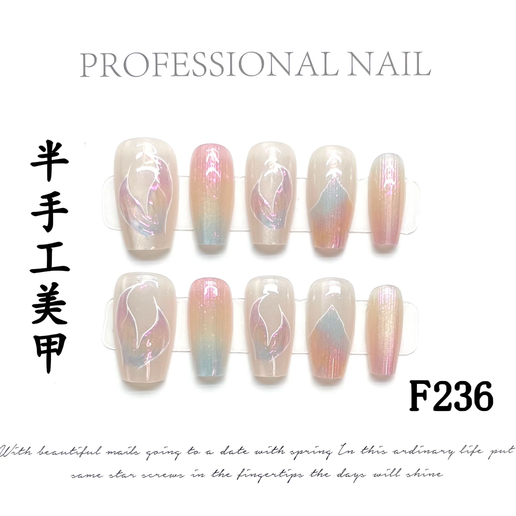 【半手工穿戴甲】长款短款预制甲片美甲假指甲可拆卸批发十片装