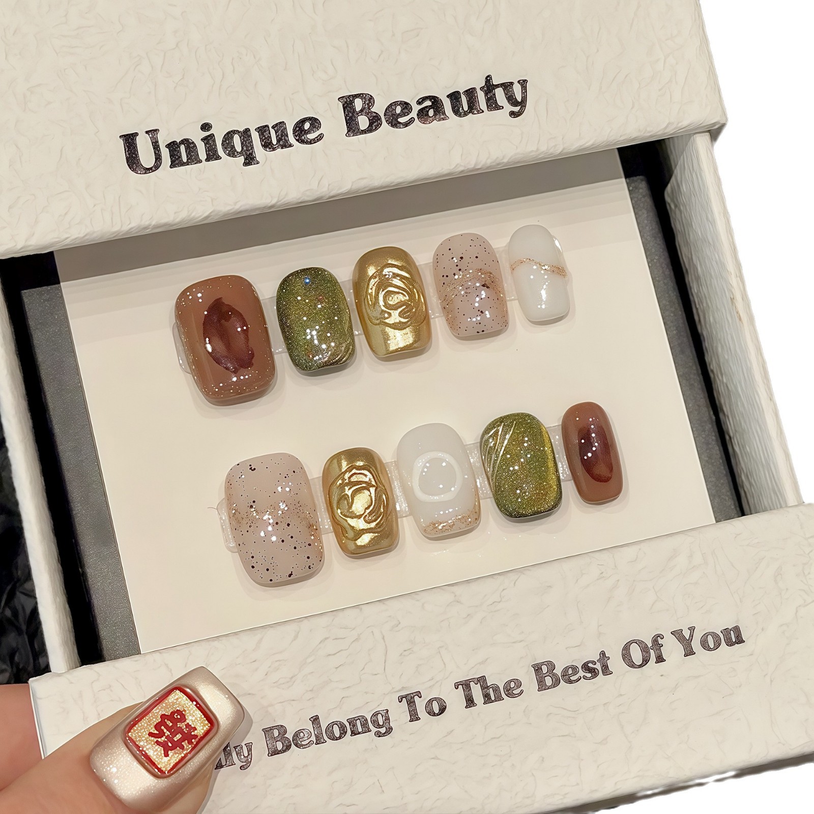 一只顾美甲 爆闪金色微笑猫眼珍珠小碎钻马眼蝴蝶枫糖可拆卸甲片