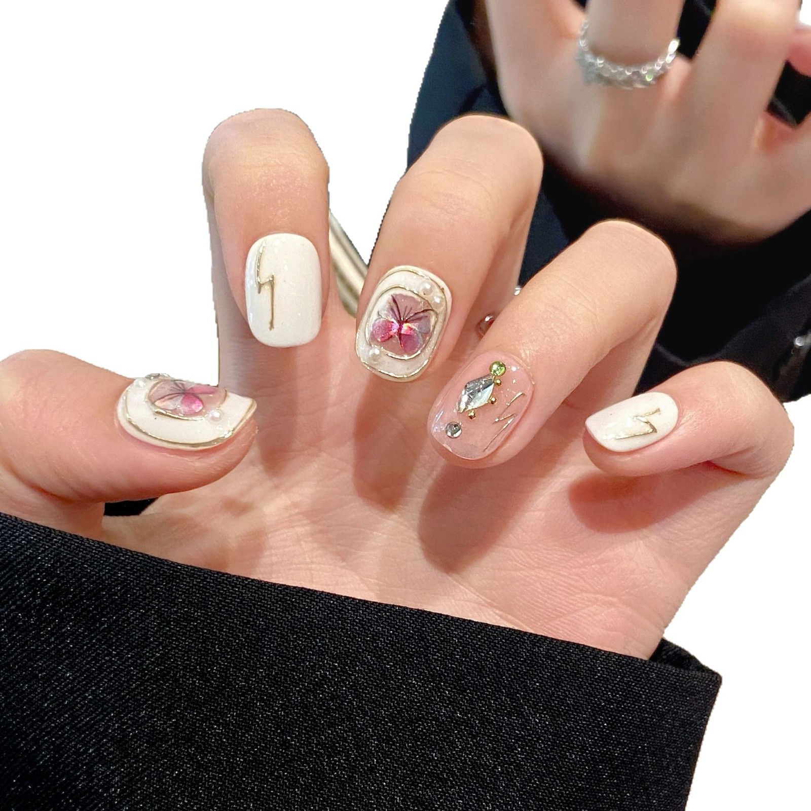 艺禾美甲 巴洛克蝴蝶纯手工穿戴甲春夏新款蝴蝶气质奶白短款日常