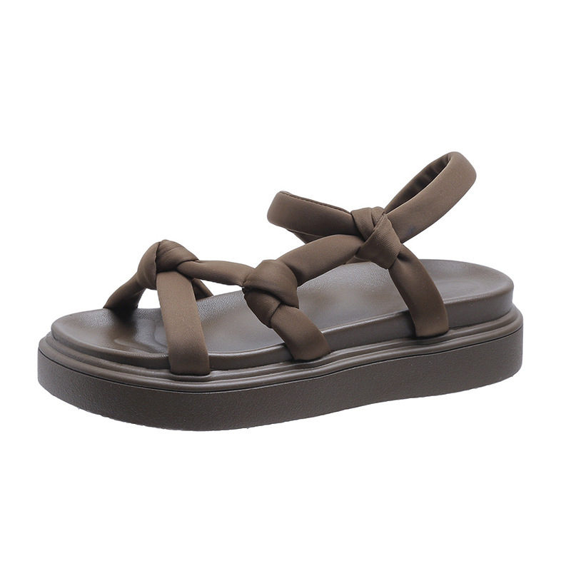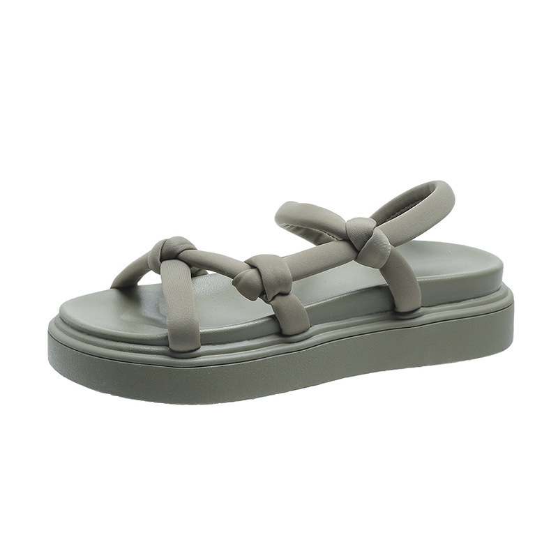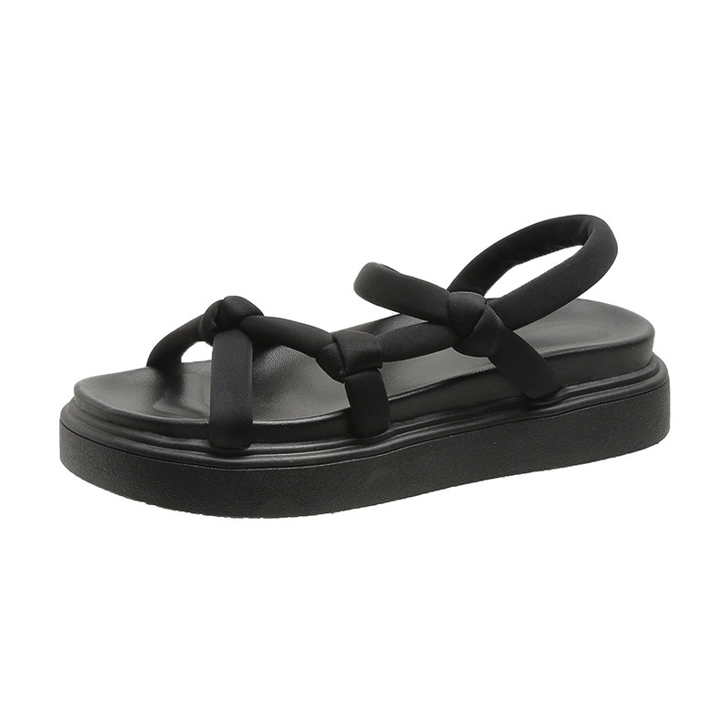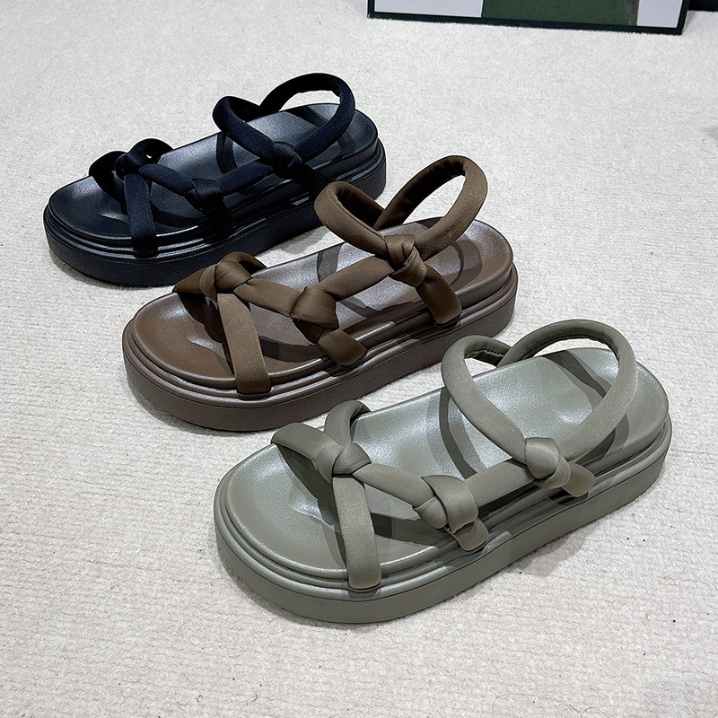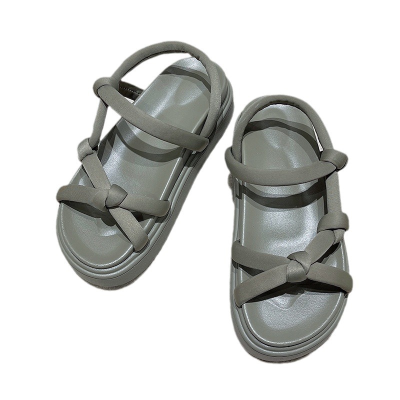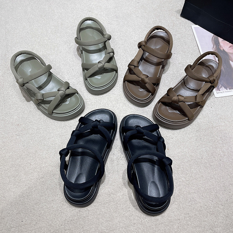 新款运动风凉鞋女松糕底休闲露趾凉鞋女厚底套脚打结罗马凉鞋女