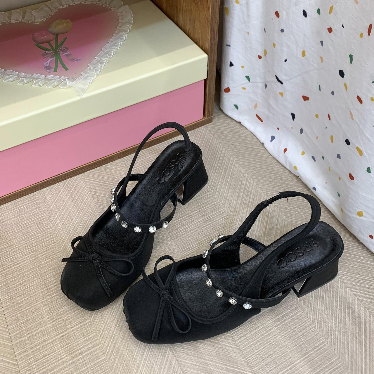 高跟鞋粗跟银色包头凉鞋女新款夏季配裙子玛丽珍中跟单鞋