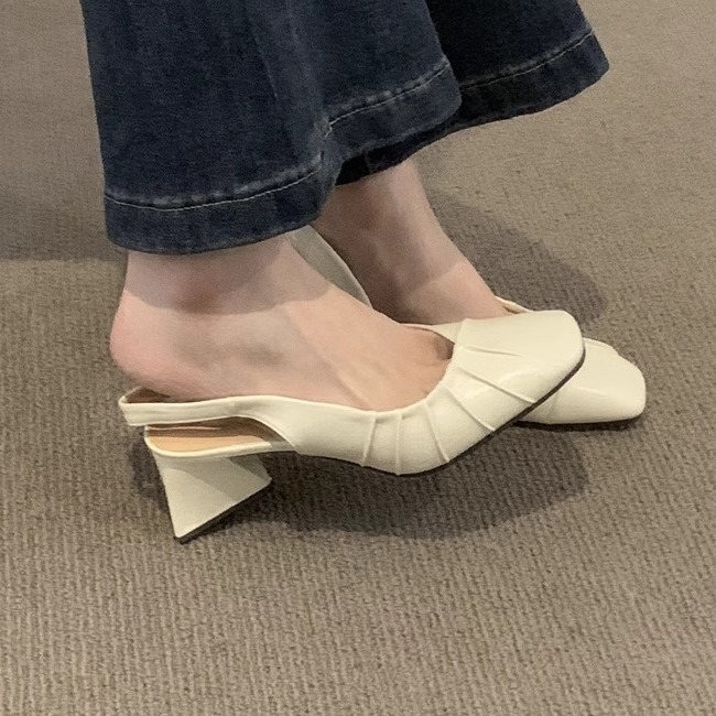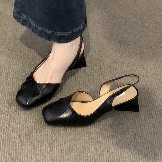 2025年春夏新款高跟包头后空凉鞋女鞋粗跟浅口法式温柔风单鞋女鞋