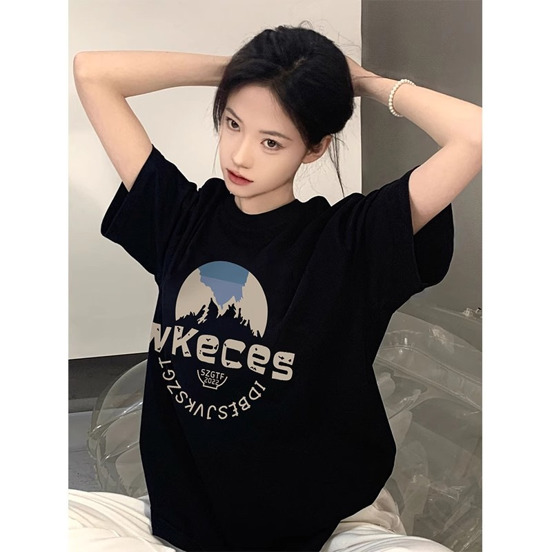 纯棉重磅chic港味短袖t恤女春夏新款设计感小众宽松大码上衣