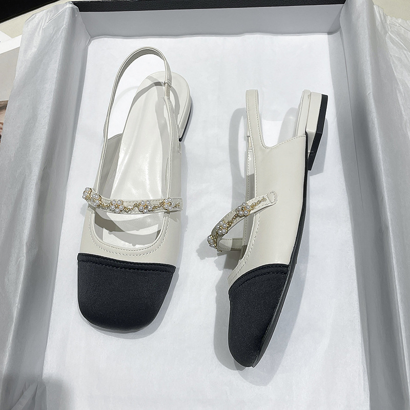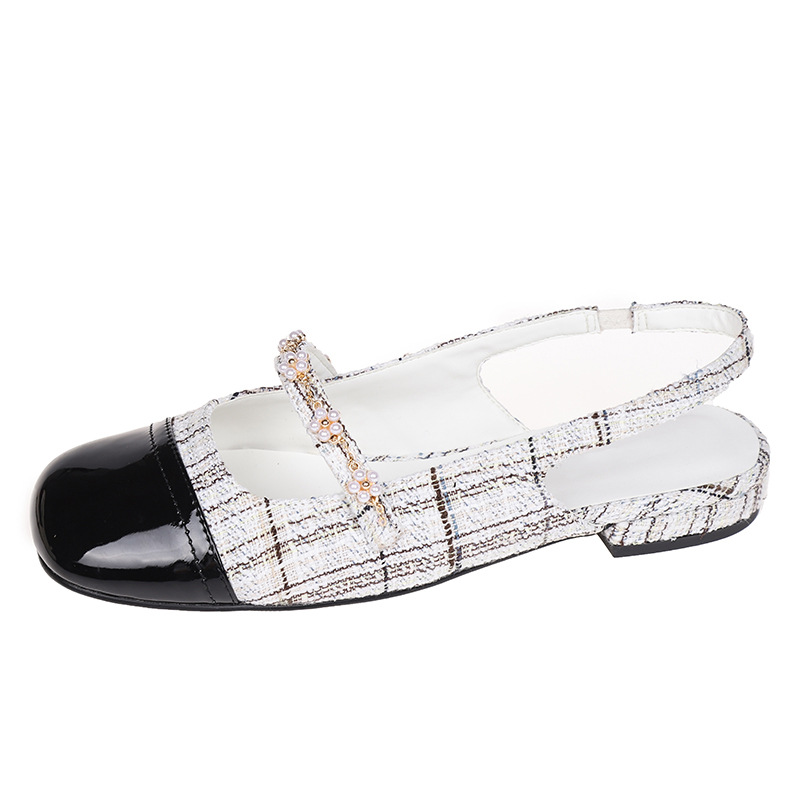 夏季法式平底凉鞋小香风新款包头花呢浅口平底鞋女通勤