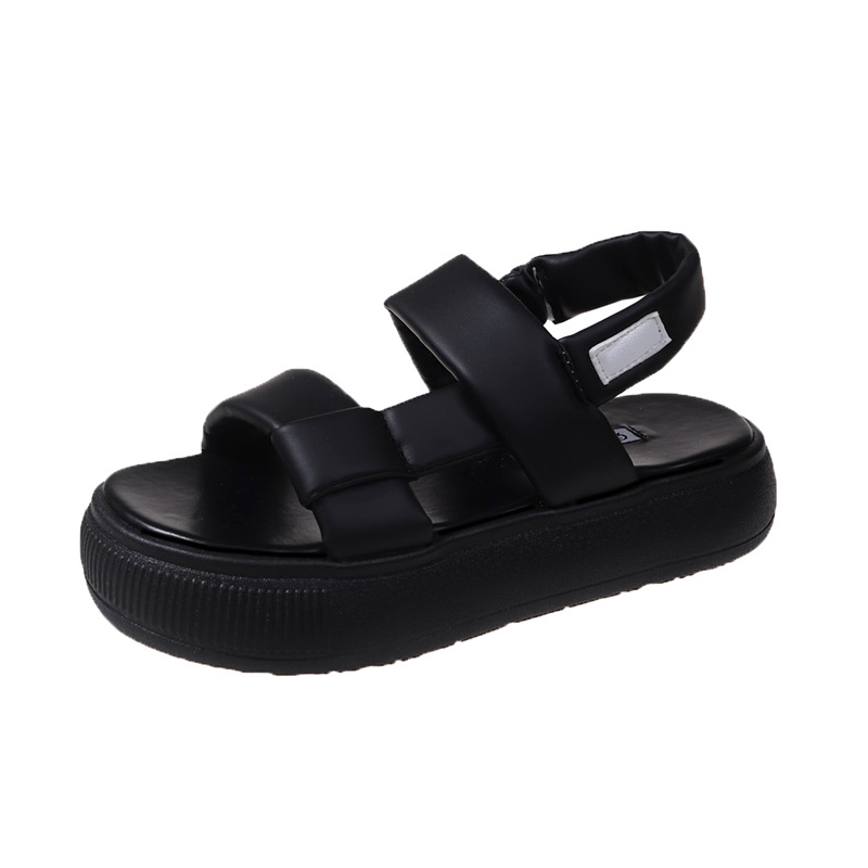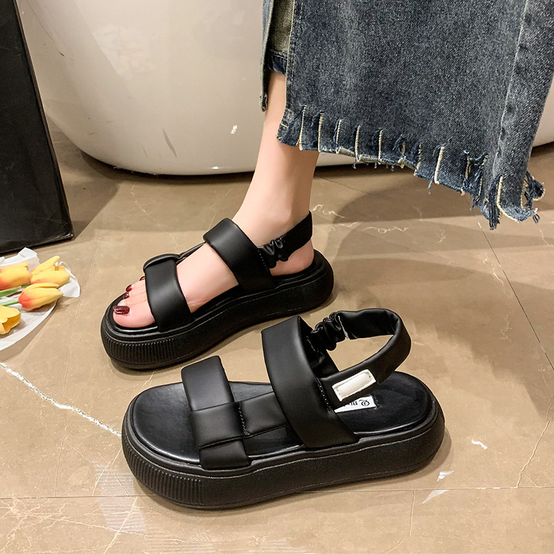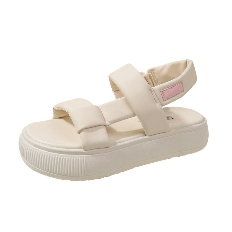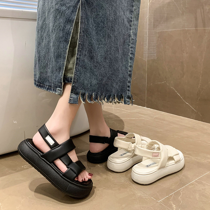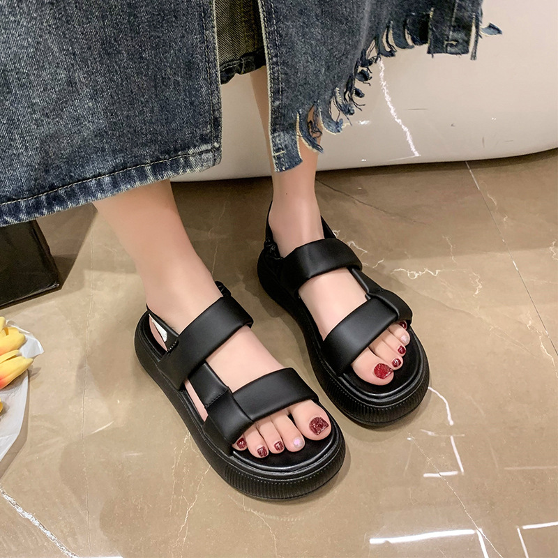 百搭罗马春夏平底厚底凉鞋韩版魔术贴圆头休闲凉鞋女面包鞋女