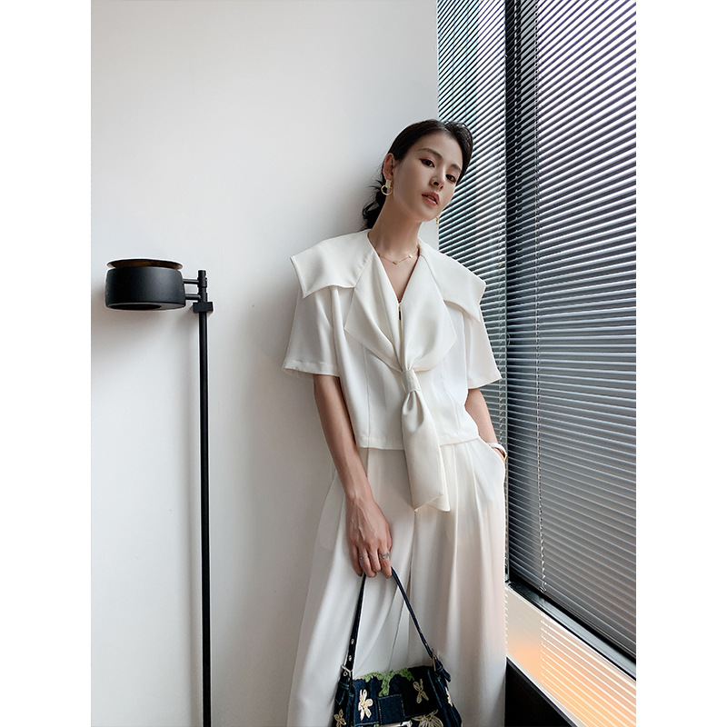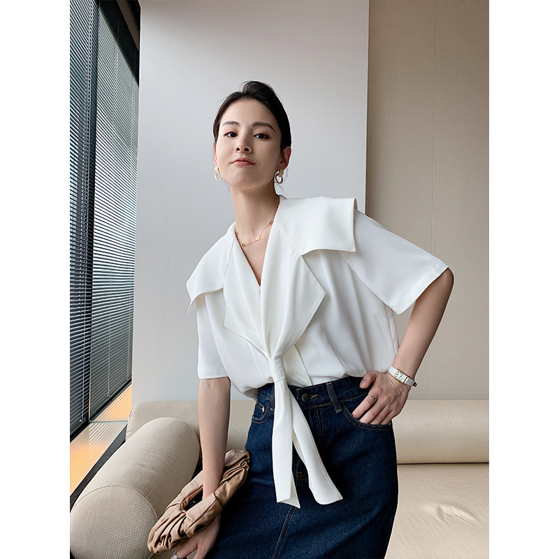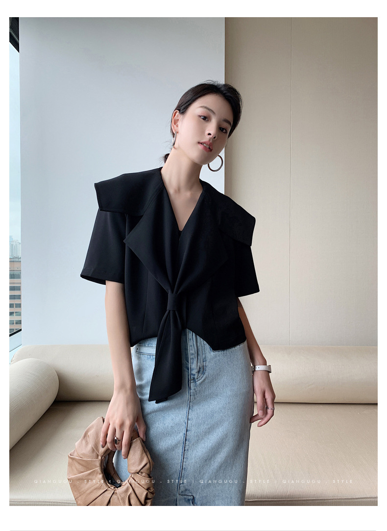 减龄海军领衬衫女春夏气质显瘦短袖衬衣设计感轻熟上衣薄款