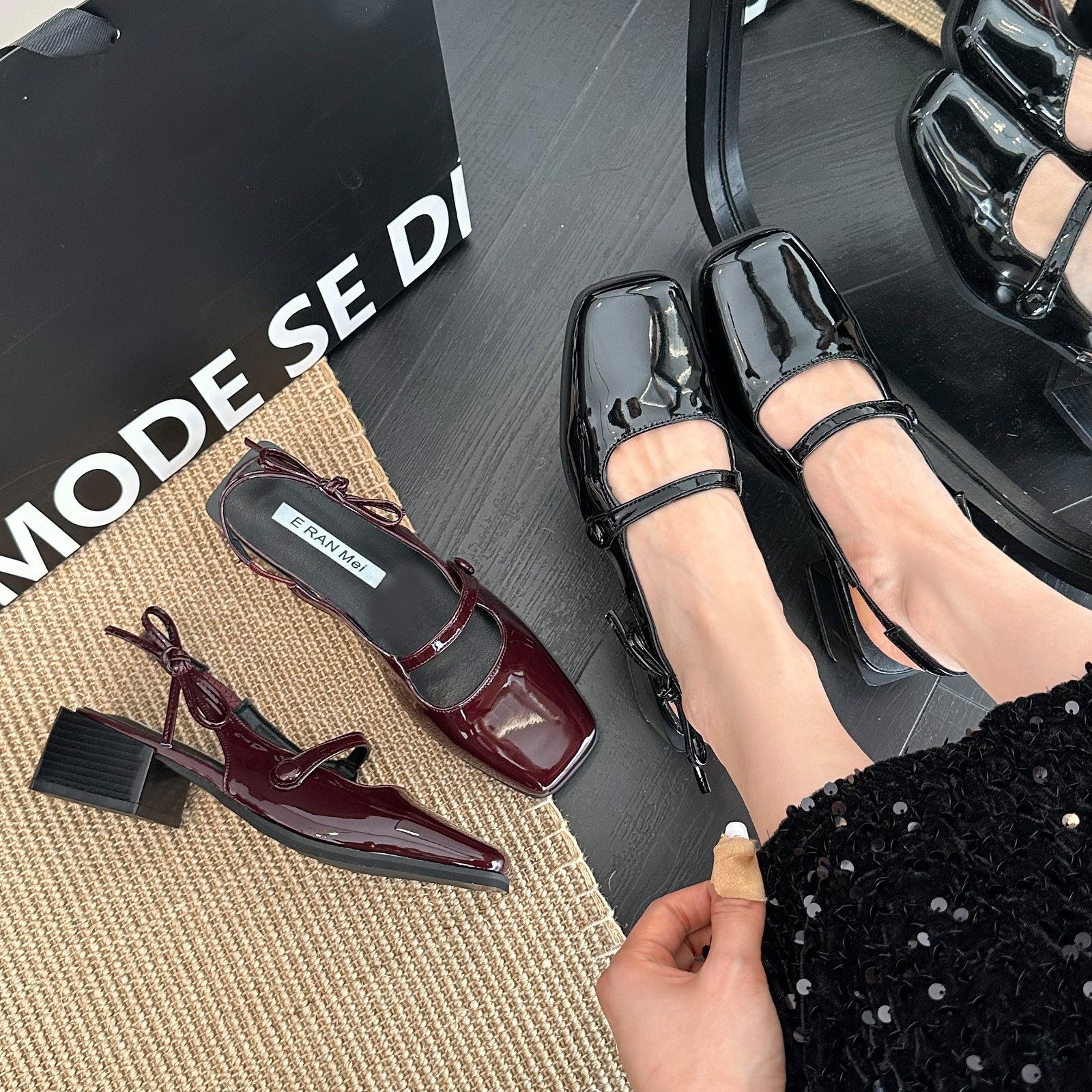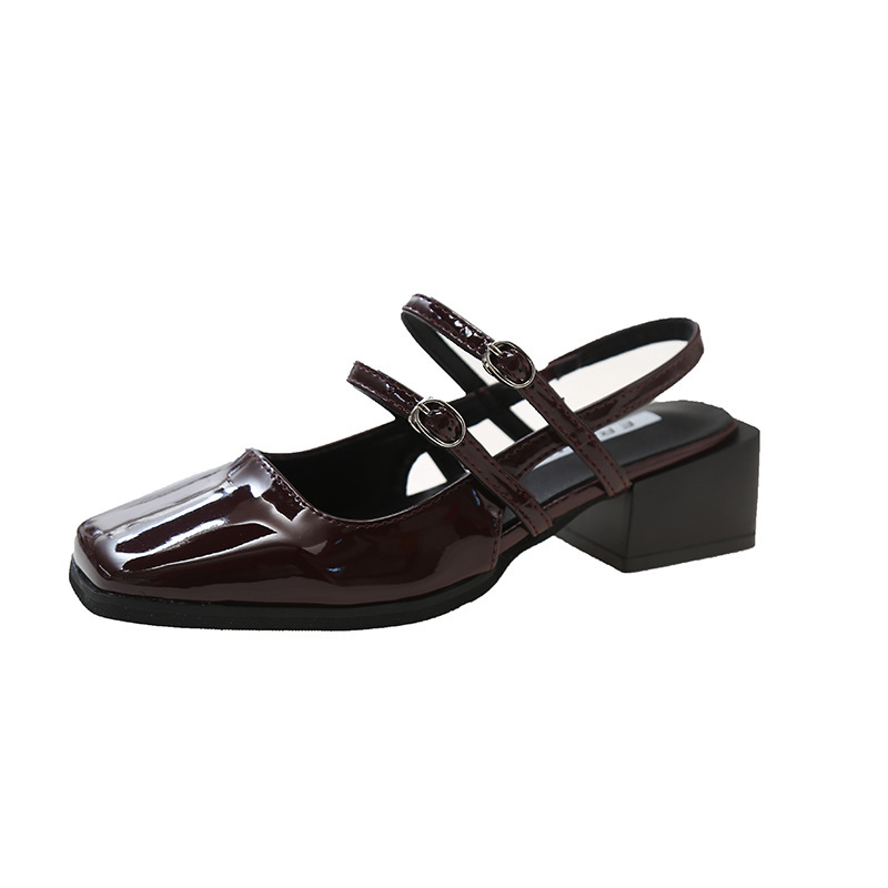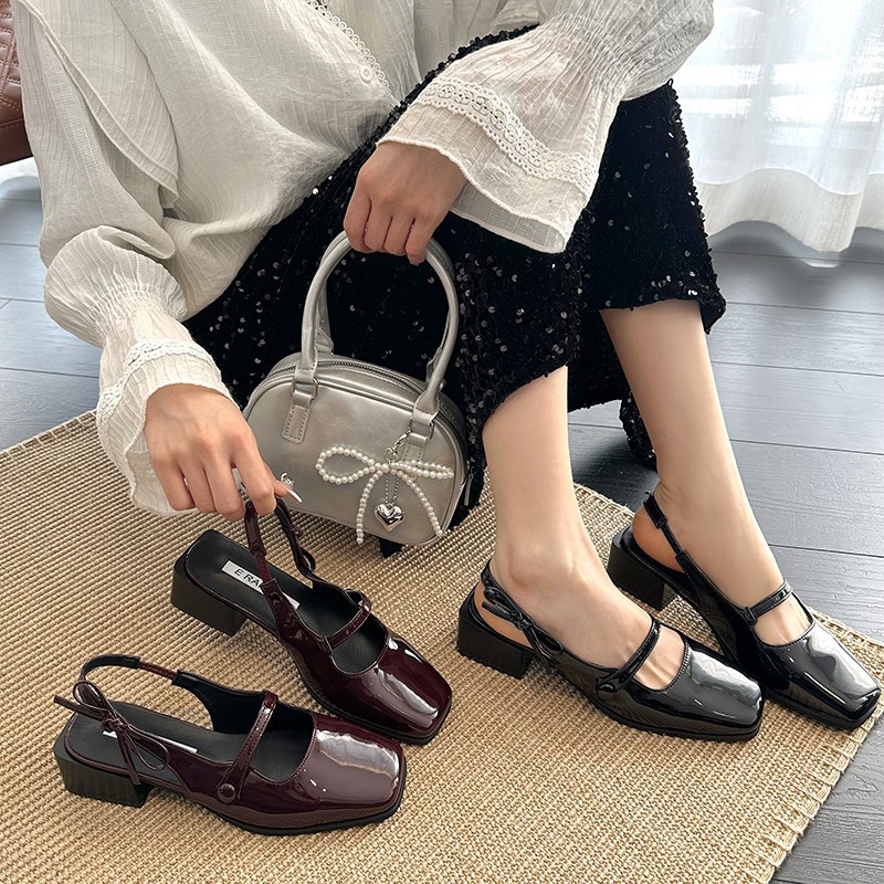 小众凉鞋玛丽珍包头凉鞋女夏新款复古方头粗跟后空单鞋