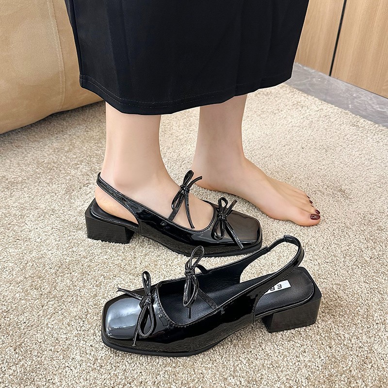 35-42码一字带粗跟单鞋女2025年春季新款仙女风温柔百搭包头凉鞋