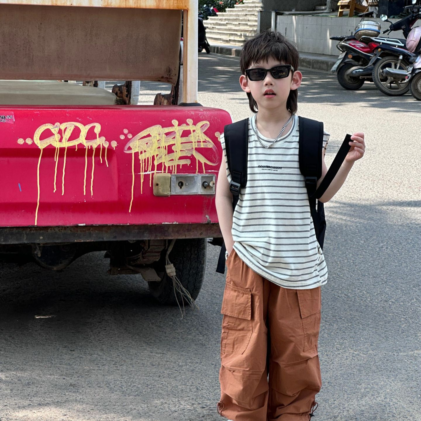 泰如夏季新款韩版男童休闲字母细条纹套头T恤儿童上衣背心潮