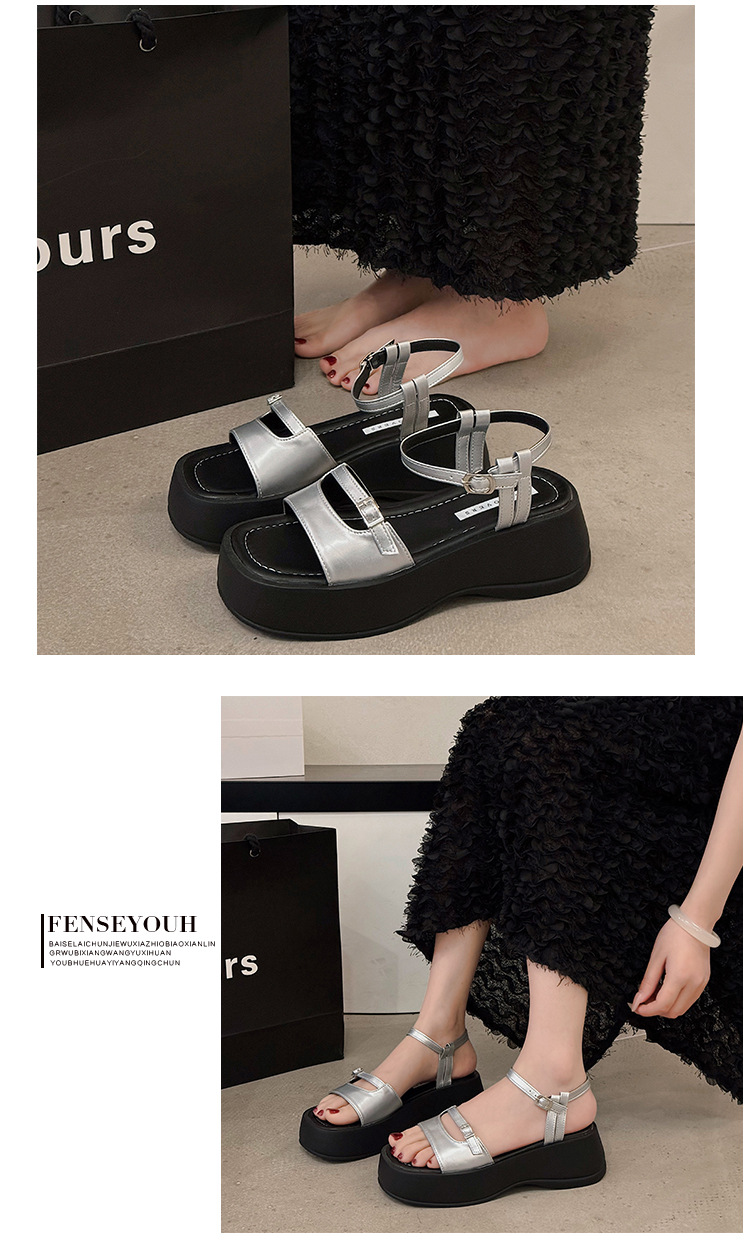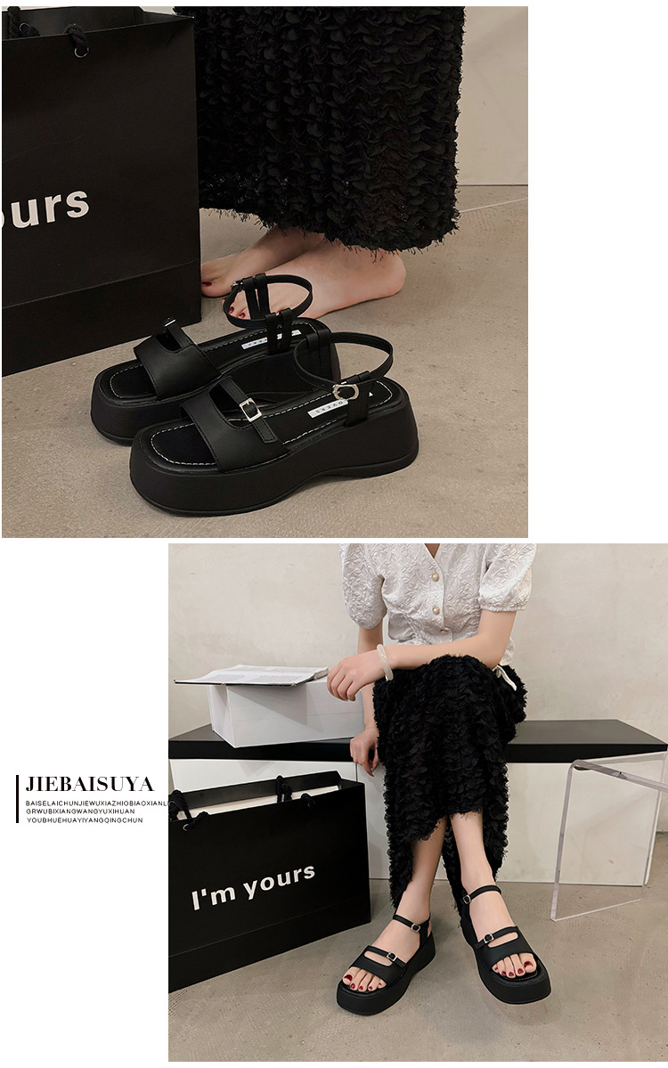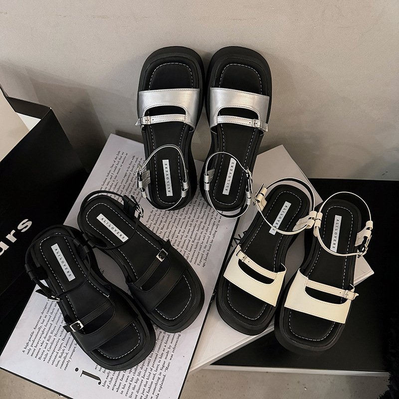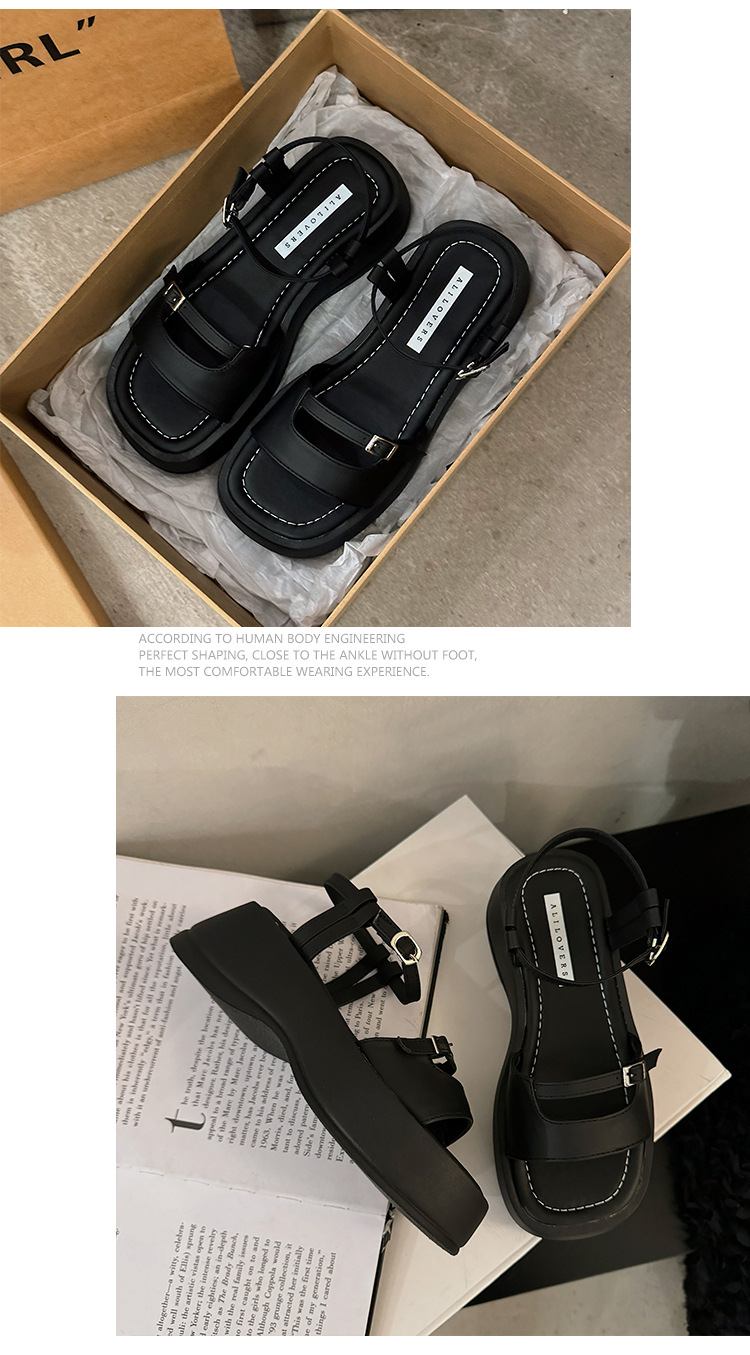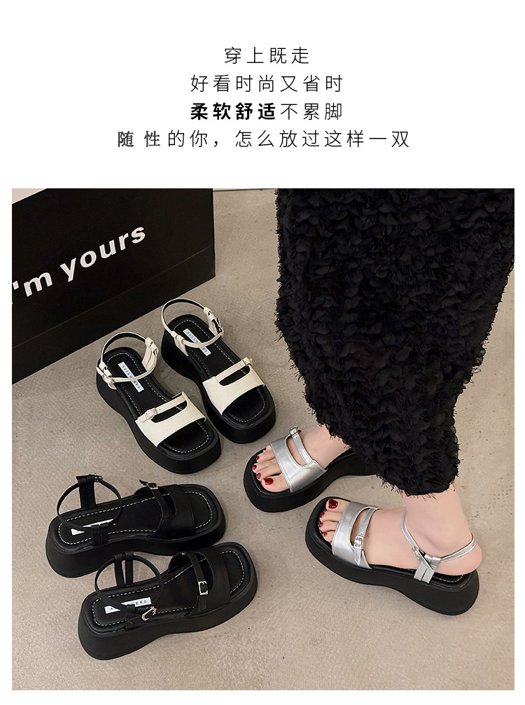 小众高级感凉鞋女夏季新款厚底松糕配裙子罗马风坡跟凉鞋女