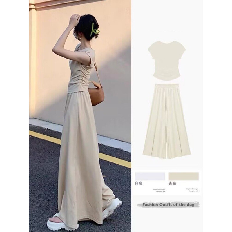 夏装搭配一整套休闲时尚减龄T恤阔腿裤两件套装夏季新款女装